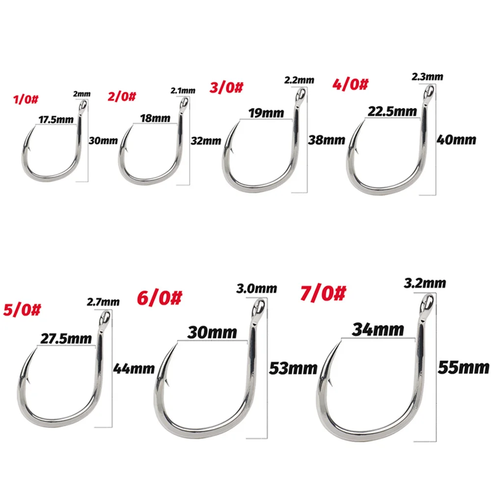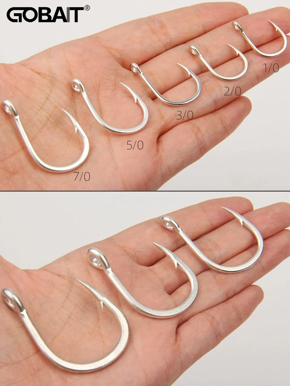 GOBAIT 10 Uds anzuelo de pesca gigante grande 1/0-7/0# Anzuelos circulares forjados en línea Shark, Swordfish y atún Gancho simple plano Acero inoxidable Gran ángulo de juego Gancho con púas Pesca de agua salada Anzuelo afilado antioxidante duradero