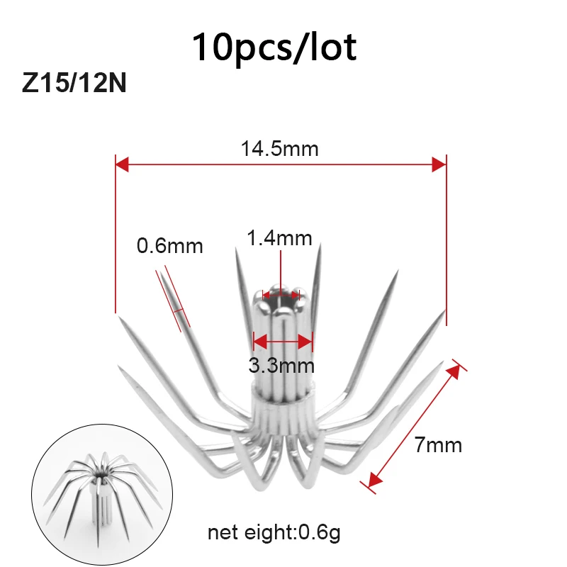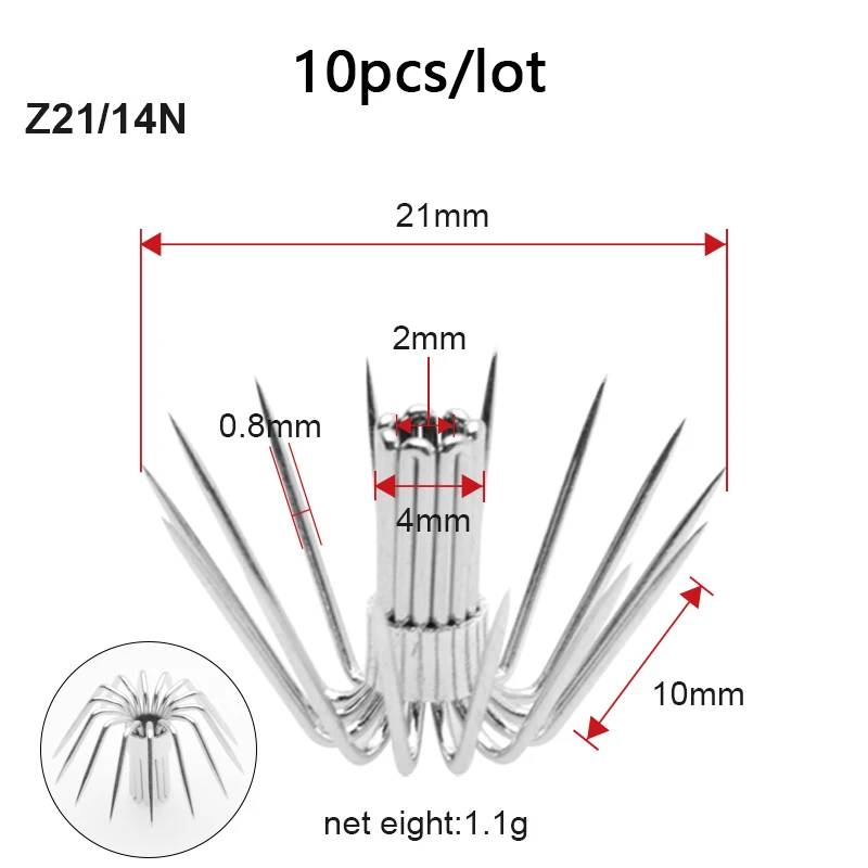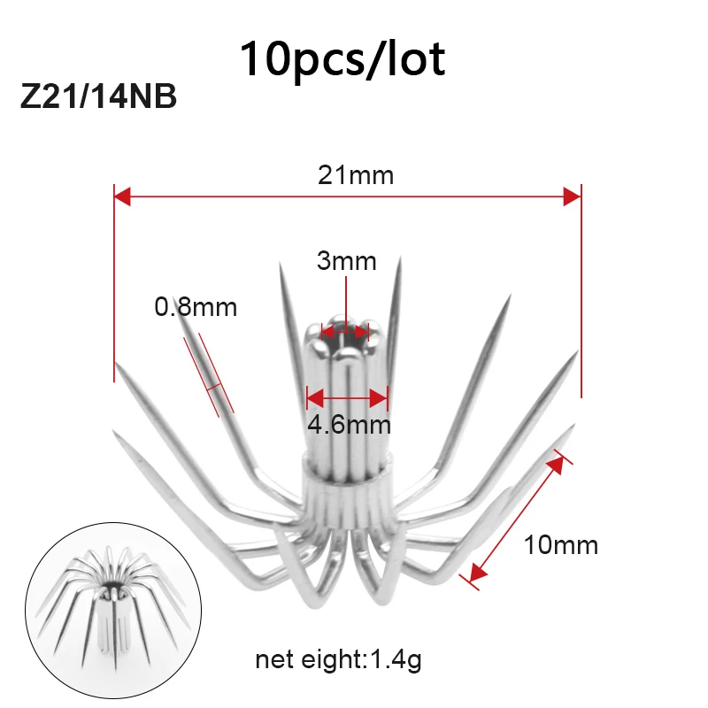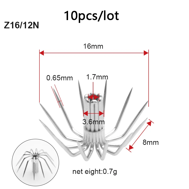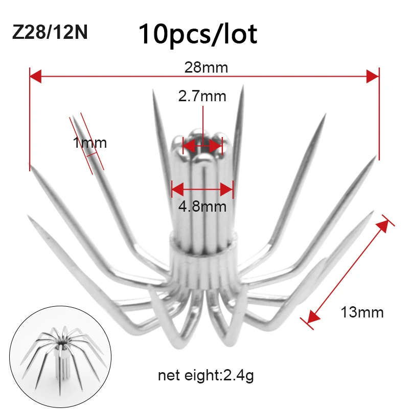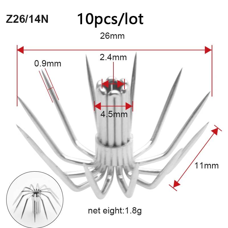 10 Uds. De anzuelo de paraguas de acero inoxidable, anzuelo de calamar, anzuelo de pesca grande, anzuelo sellado antiagua de mar con múltiples garras, hoo de calamar
