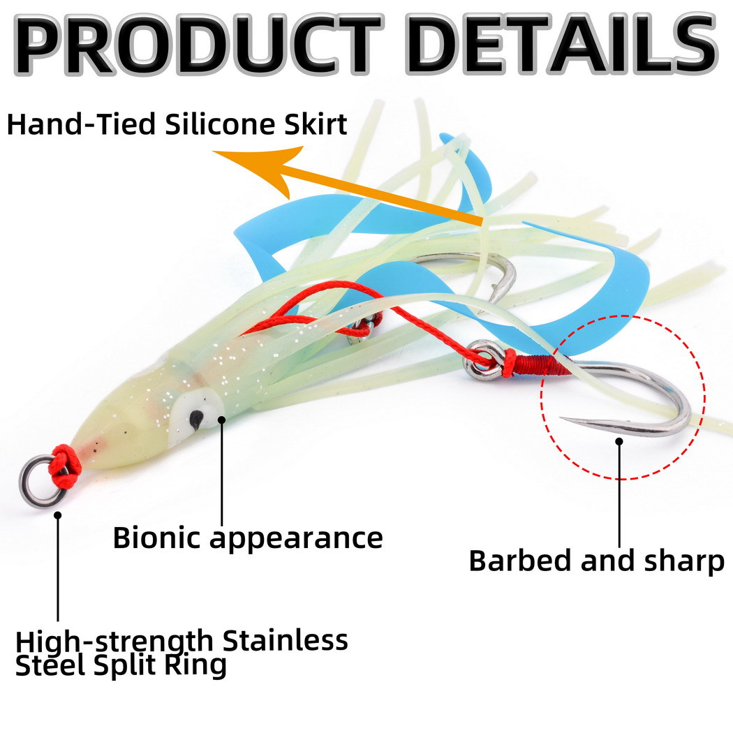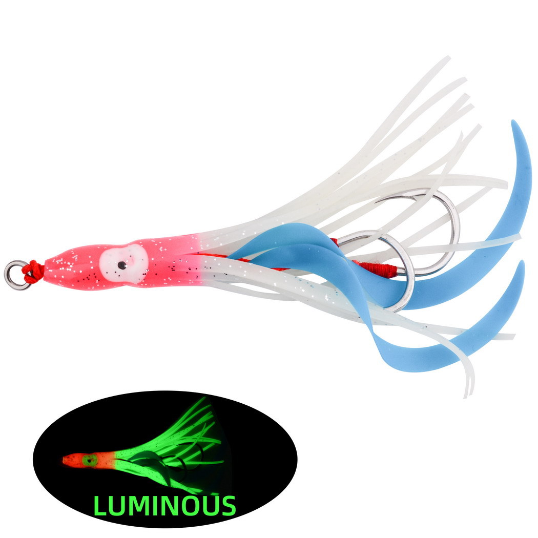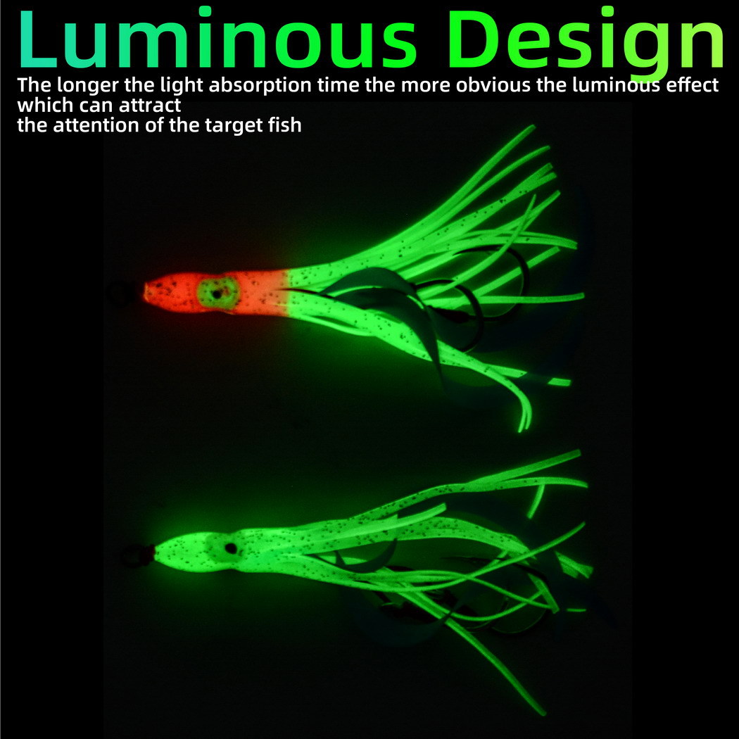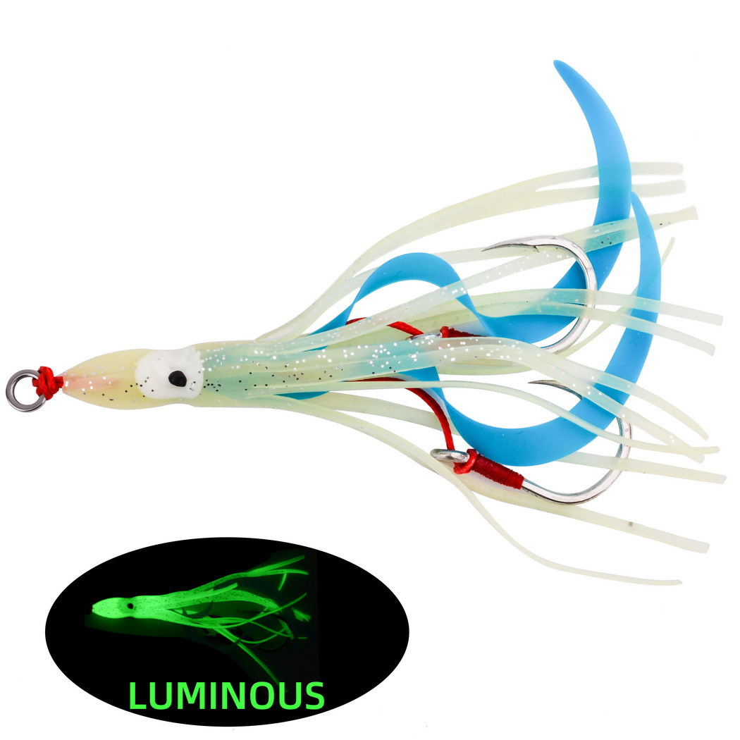 10 Uds. Anzuelo de pesca de 12,5 cm, anzuelo de señuelo suave Luminou pulpo, placa de hierro, doble gancho, pesca en barco de mar, cebo Artificial, peces de agua salada