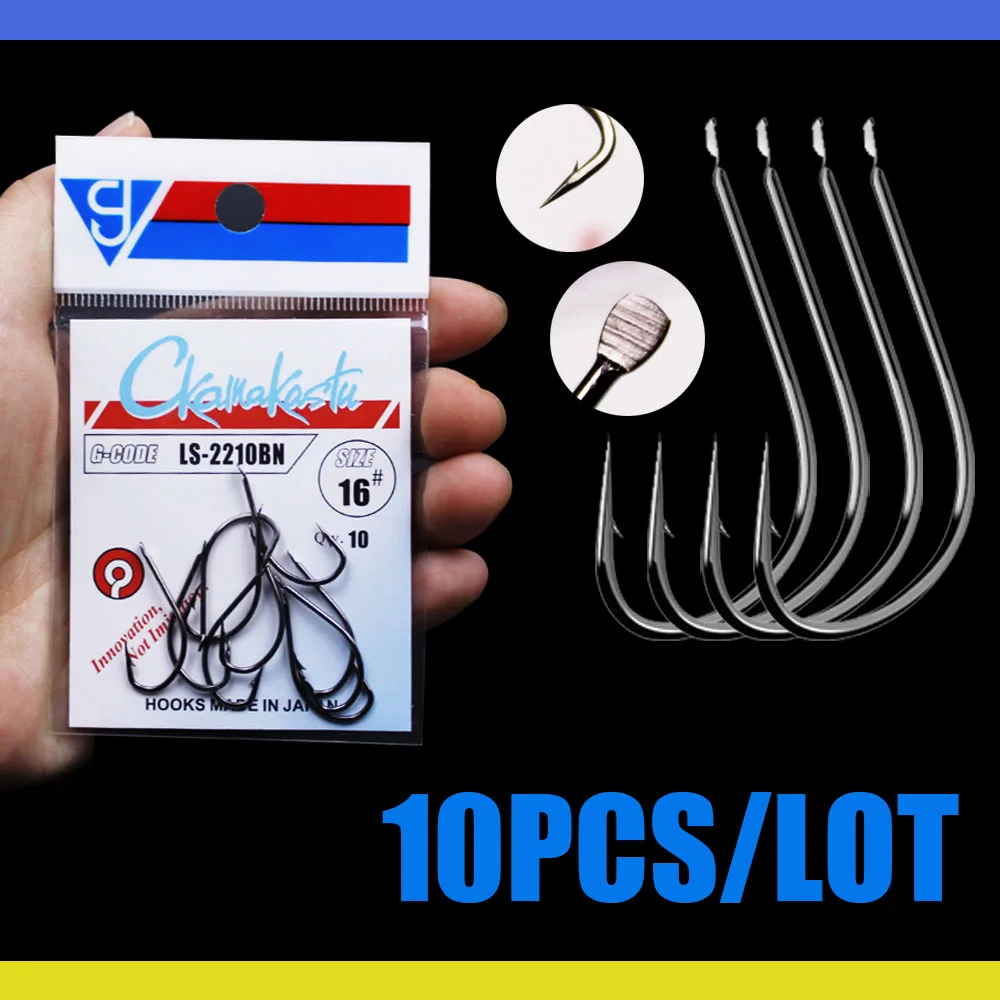 10 Uds. Anzuelo de pesca con púas, boca curva, Triangular, ataque rápido, súper aguja, anzuelo negro, lubina, anzuelos japoneses