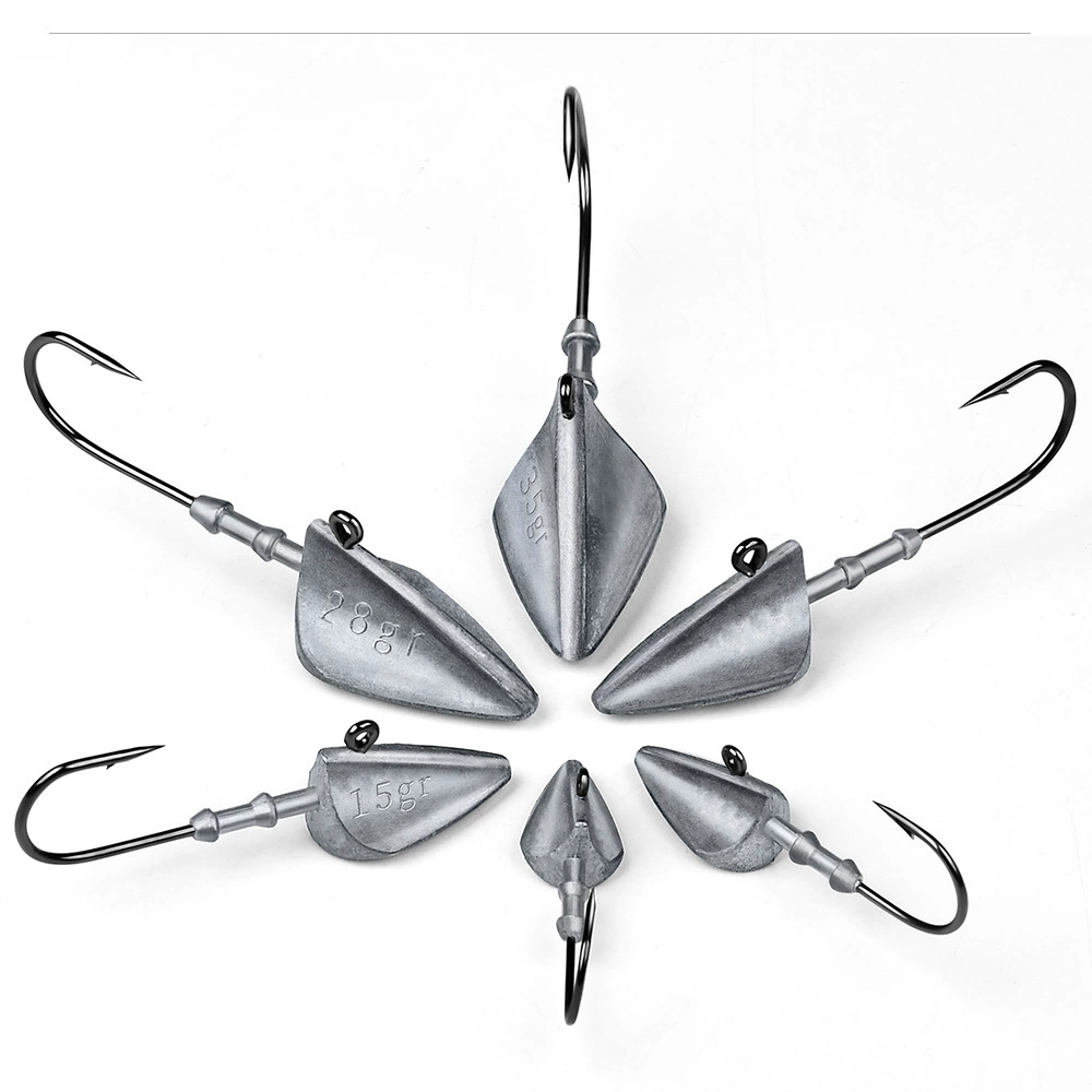 10 Uds. Anzuelos de cabeza triangular 7g 10g 15g 21g 28g 35g tipo barco anzuelo de pesca anzuelo de gusano suave anzuelo de señuelo cabeza de plantilla anzuelos de aparejos de pesca