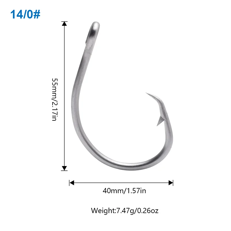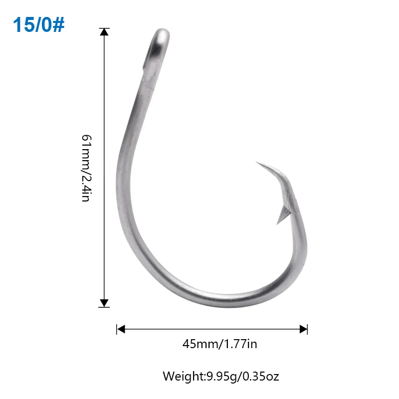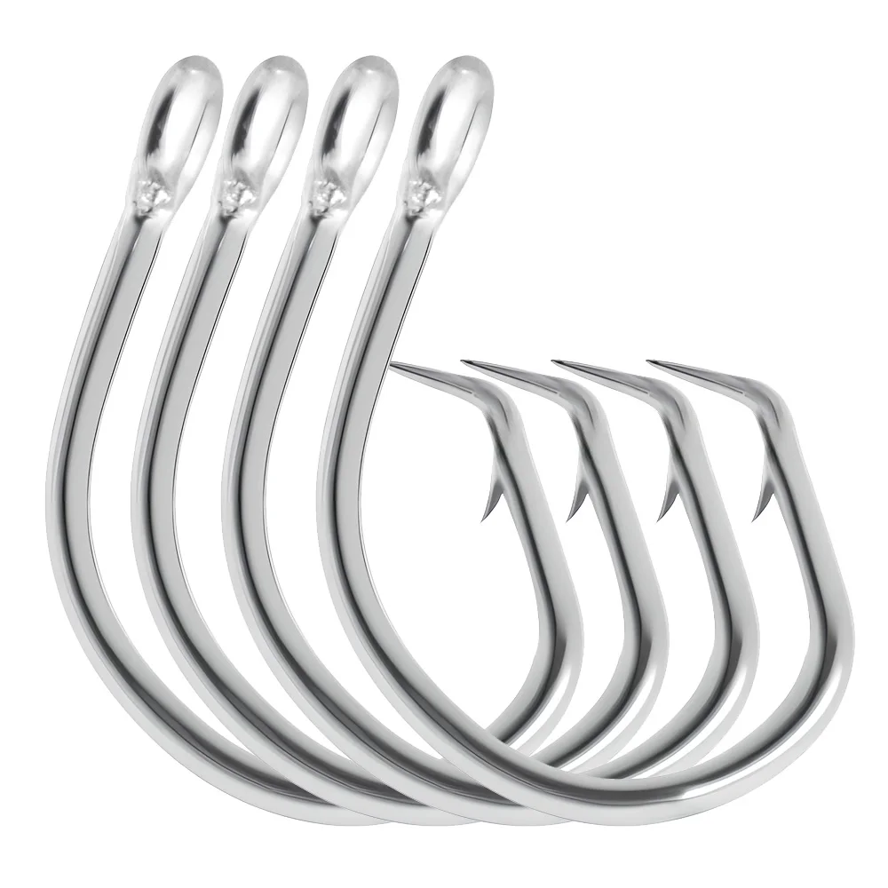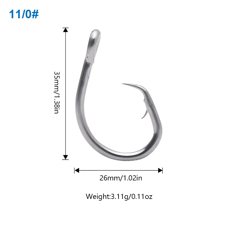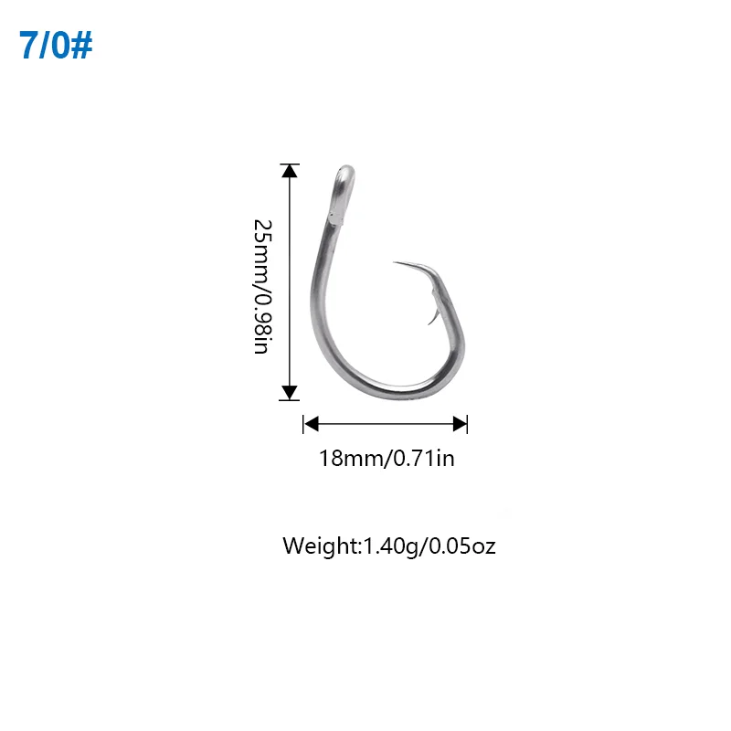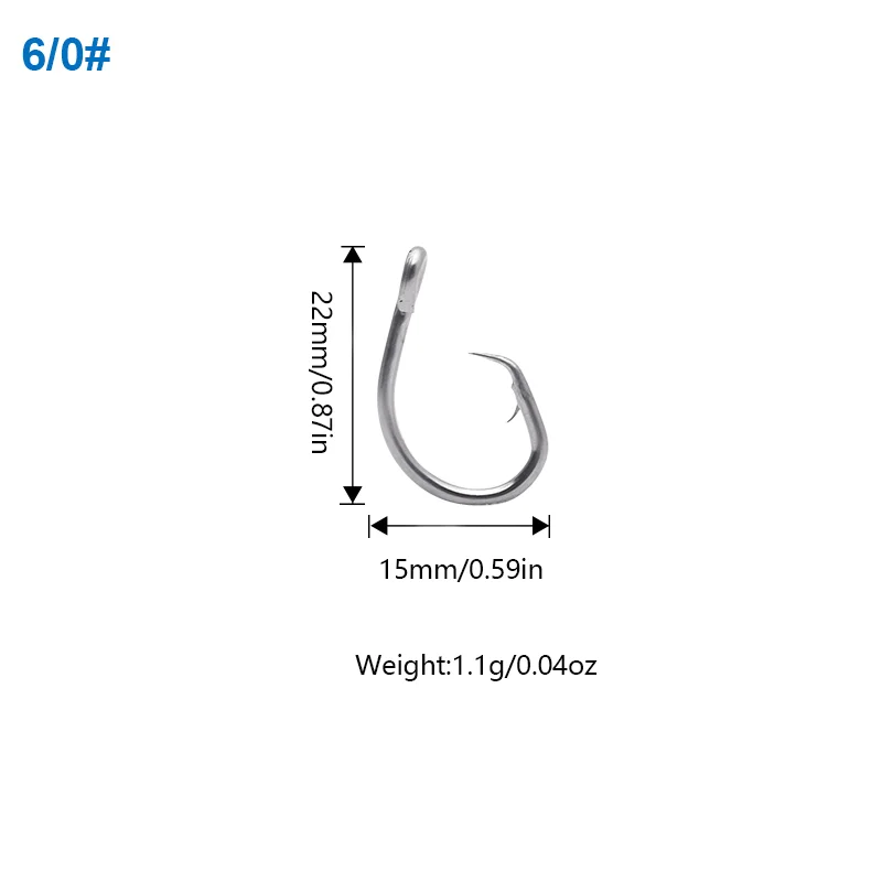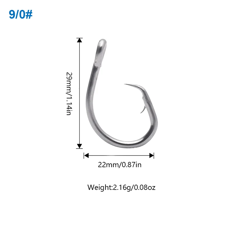 3. Los anzuelos circulares de acero inoxidable son realmente afilados, pueden sostener los peces grandes y apuñalarlos rápidamente en el cuerpo del pez, sin escapar mientras los mantienen vivos.