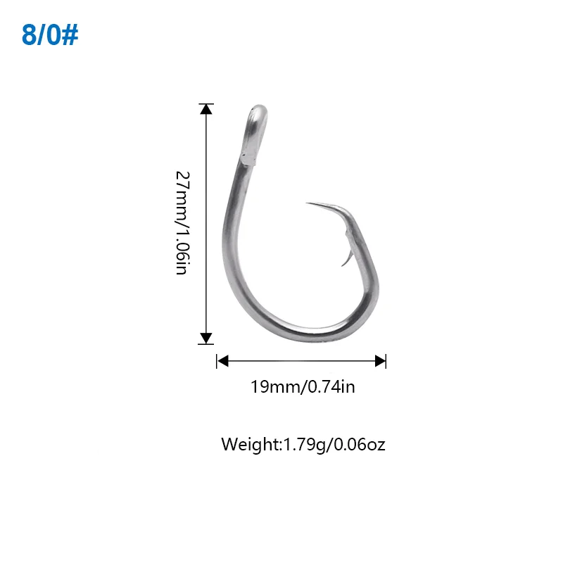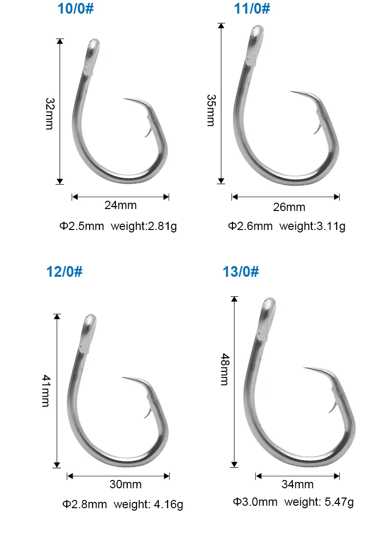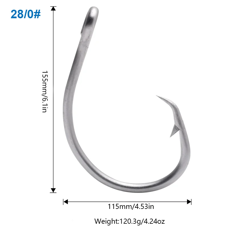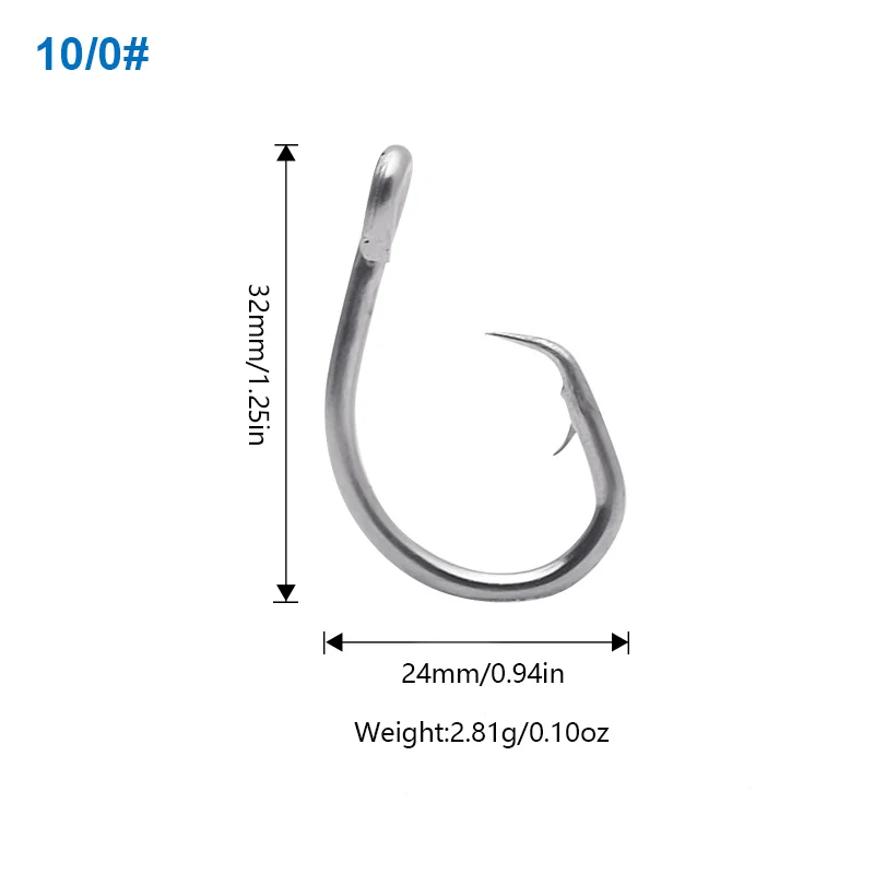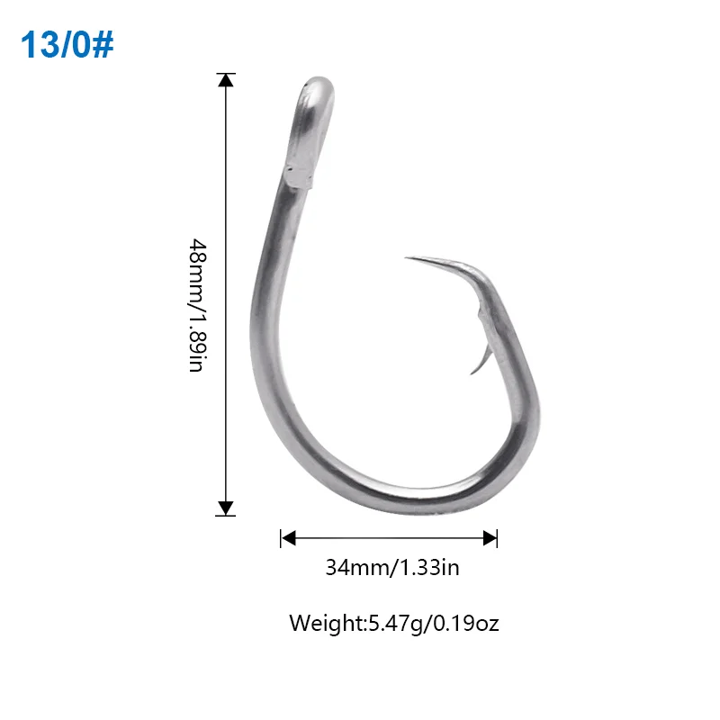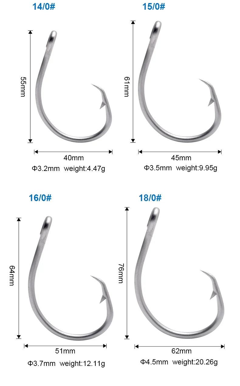 3. Los anzuelos circulares de acero inoxidable son realmente afilados, pueden sostener los peces grandes y apuñalarlos rápidamente en el cuerpo del pez, sin escapar mientras los mantienen vivos.