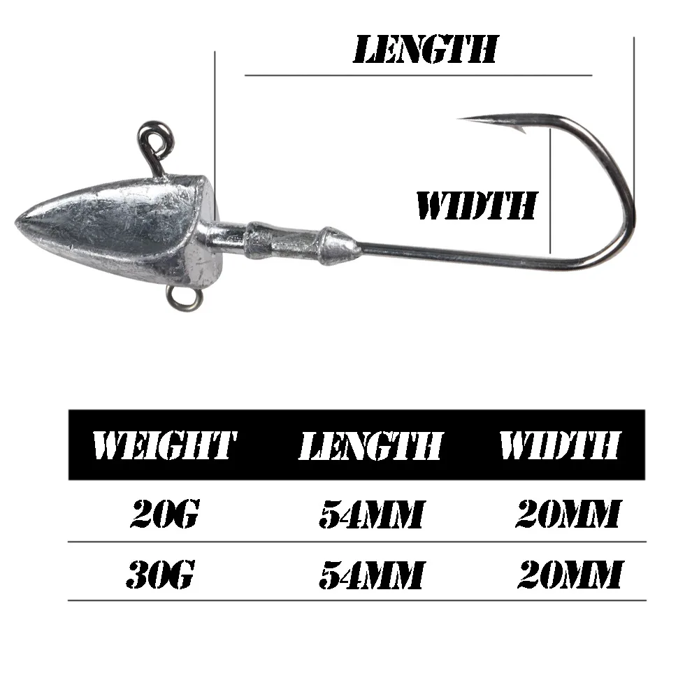 10 Uds. Anzuelos de pesca con cabeza de Jigging de dardo, 20g, 30g, anzuelo de señuelo de pesca con gusanos, señuelo suave, cabeza de plantilla, cebo Artificial, aparejos de pesca