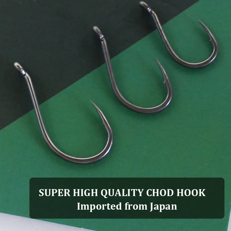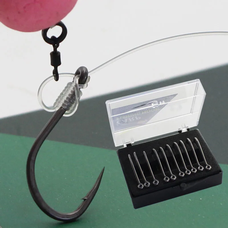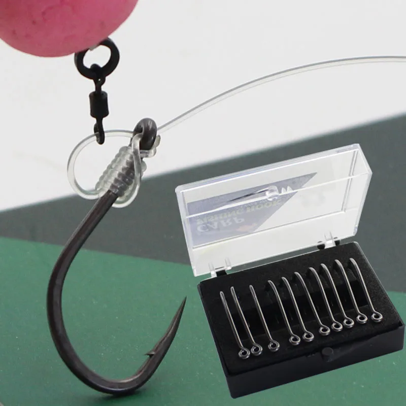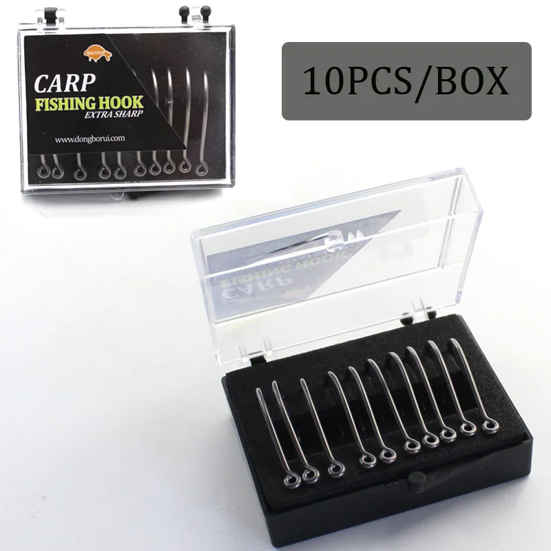 Anzuelos de pesca de carpa con revestimiento de PTFE, anzuelos de acero de alto carbono, negro mate, mango curvo de púas, estilo de pinza, anzuelos afilados para carpa, 10