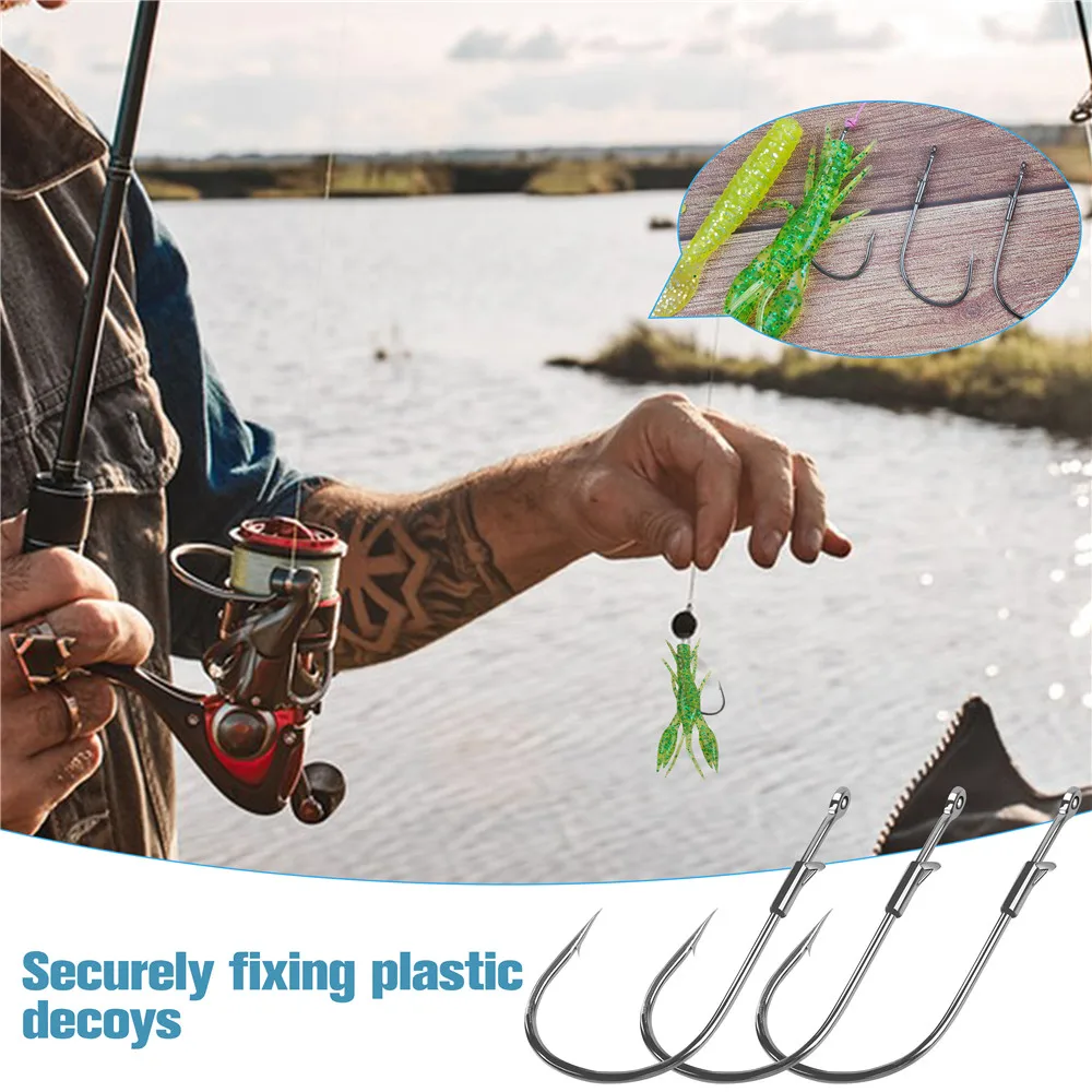 10 Uds Baitholder anzuelos de pesca Texas Rig anzuelos de pesca reforzados anzuelos de gusano con púas afiladas para pesca con señuelo de trucha lubina