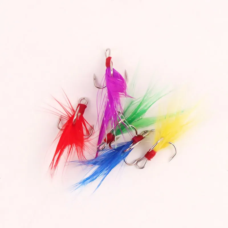 10 GANCHOS TRIBLES DISPONIBLES EN 1 TAMAÑO: 10 ganchos triples con plumas de colores.garantizar el placer de pescar continuamente