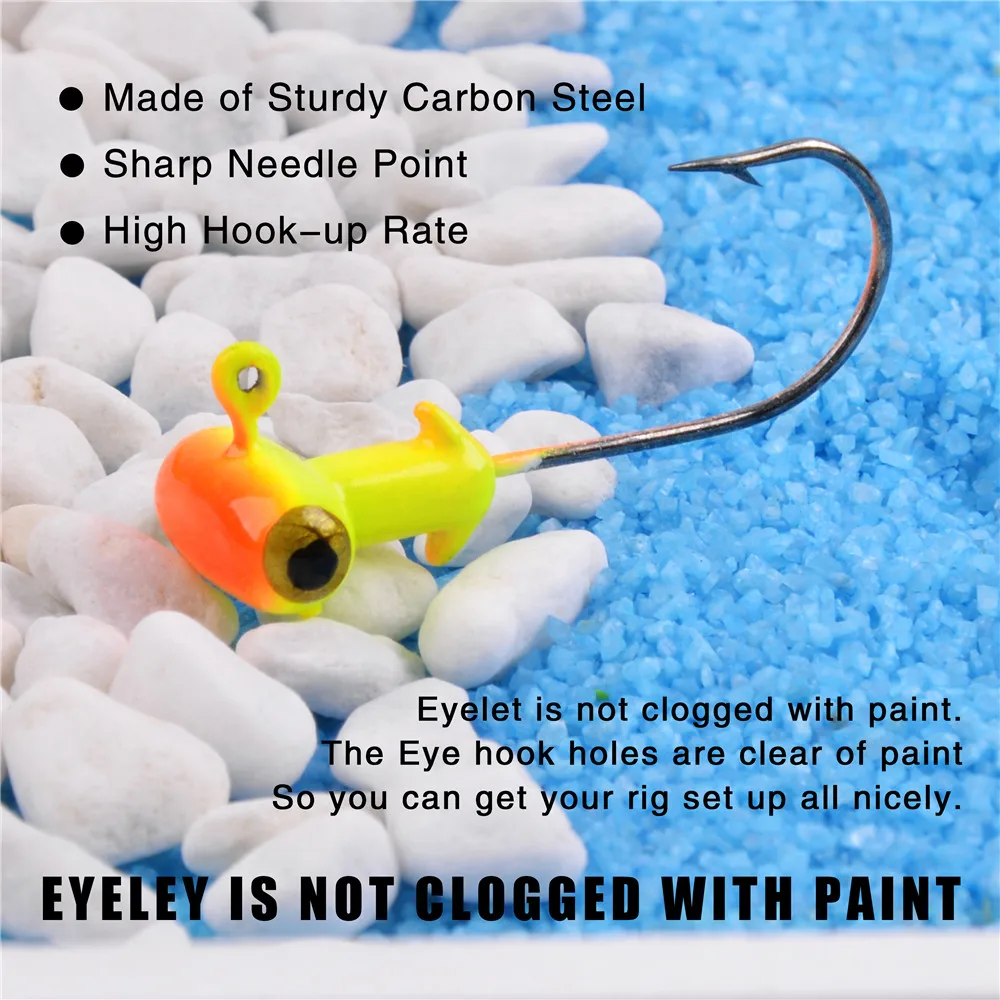 3. Los anzuelos de cabeza de anzuelo de pesca montan fácilmente sus tubos, gusanos, cebos de criaturas u otros plásticos blandos favoritos, se pueden usar para apuntar a una amplia gama de especies de agua dulce y salada, como lubina, Walleye, tipo de pez, trucha y anzuelos de gusano de panfish favoritos en agua salada. aparejos de pesca de agua dulce.