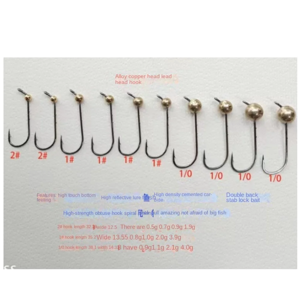 10 unids/lote Micro anzuelo de pesca cabeza 0,5g-4g cabeza de cobre Mini manivela plantilla anzuelo suave gusano señuelo accesorios de pesca