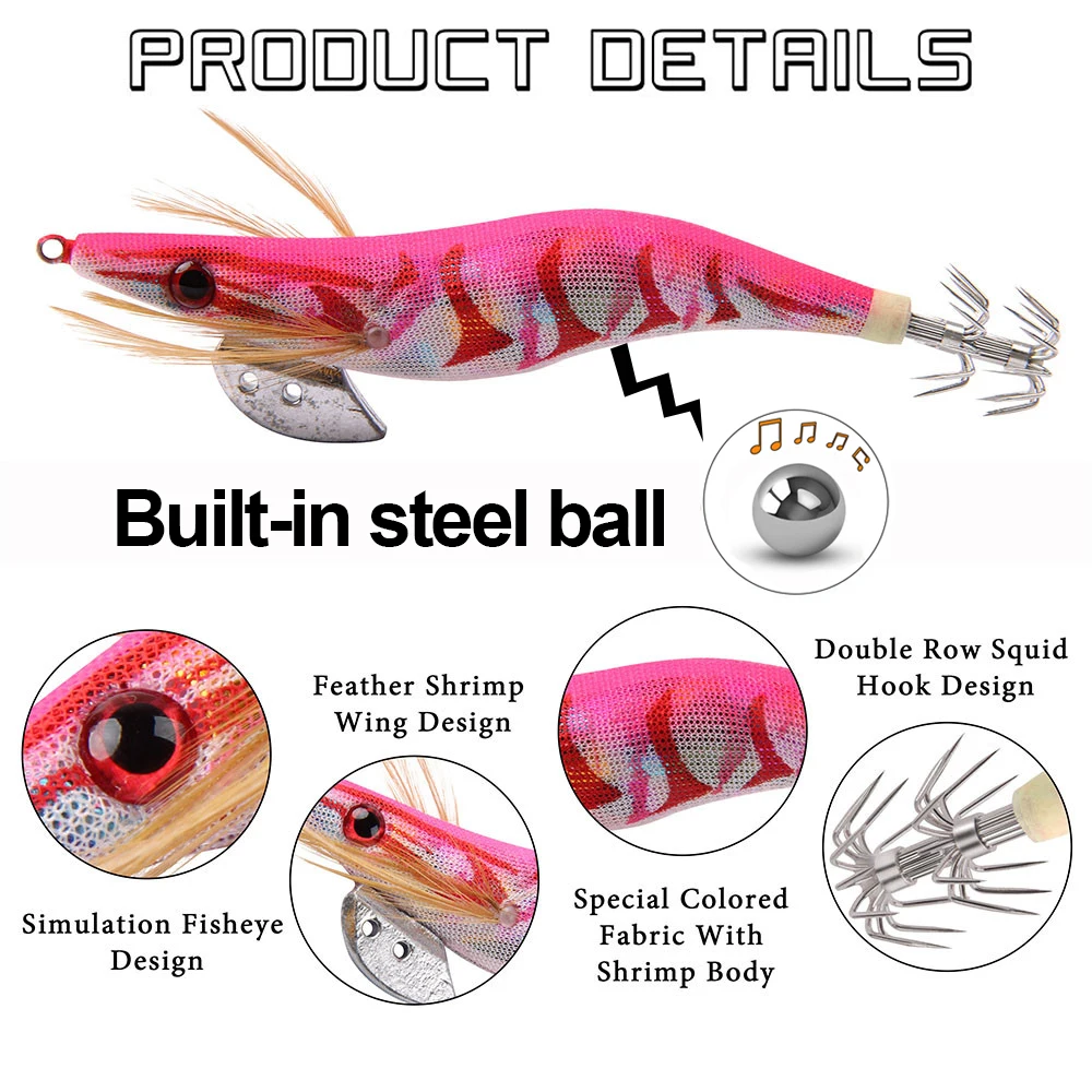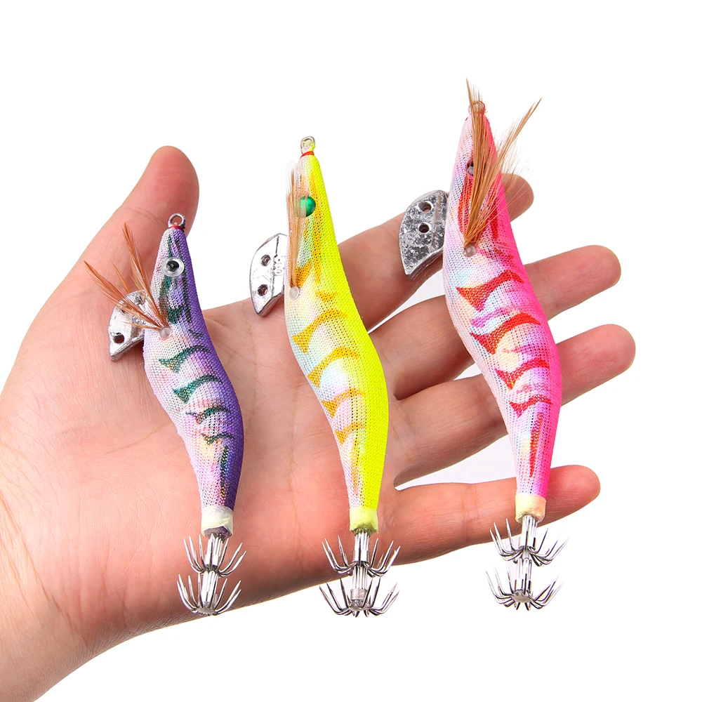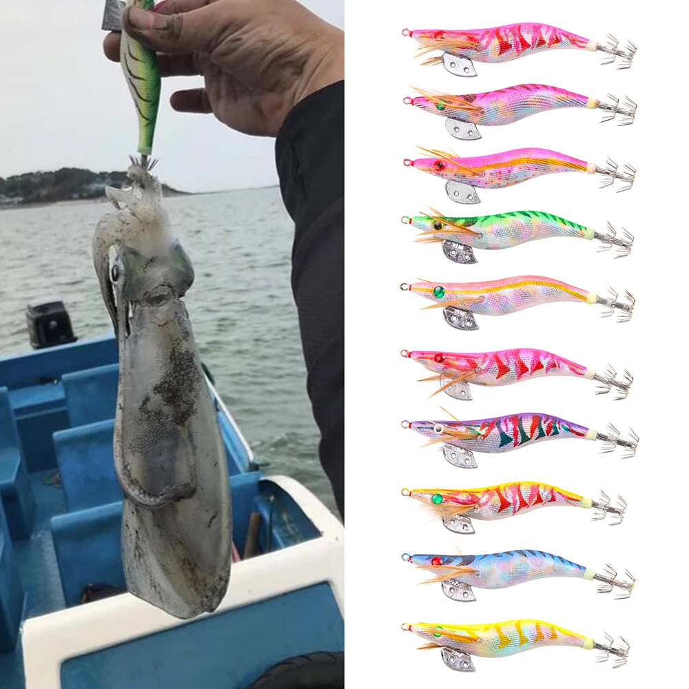 3. Señuelos luminosos para camarones, jig de calamar, ideales para peces como calamares, cangrejos, pulpos y sepias en anzuelos de pesca de agua dulce y salada.