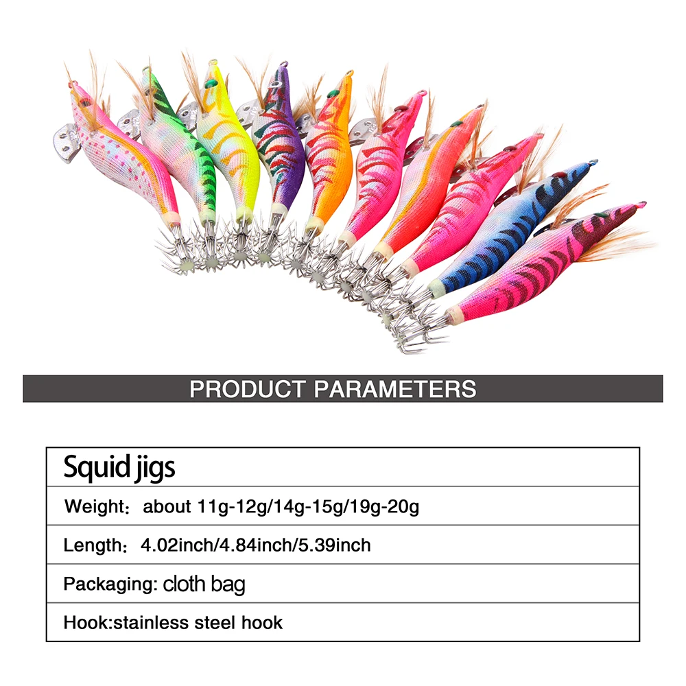 2.El cuerpo del cebo para calamar tiene una bola de acero incorporada, sonajeros que atraen en el agua, más atractivos para los peces.La superficie de las plantillas de calamar cubiertas con tela láser aumenta la fricción entre el cebo de calamar y calamar, no es fácil caerse después de engancharlas.