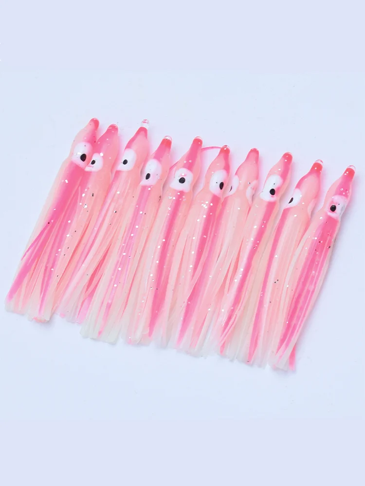10 Uds. Cebo falso de calamar de simulación luminosa, falda de calamar de pesca en el mar, cebo de anzuelo blanco rosa de 6cm-14cm, cebo suave