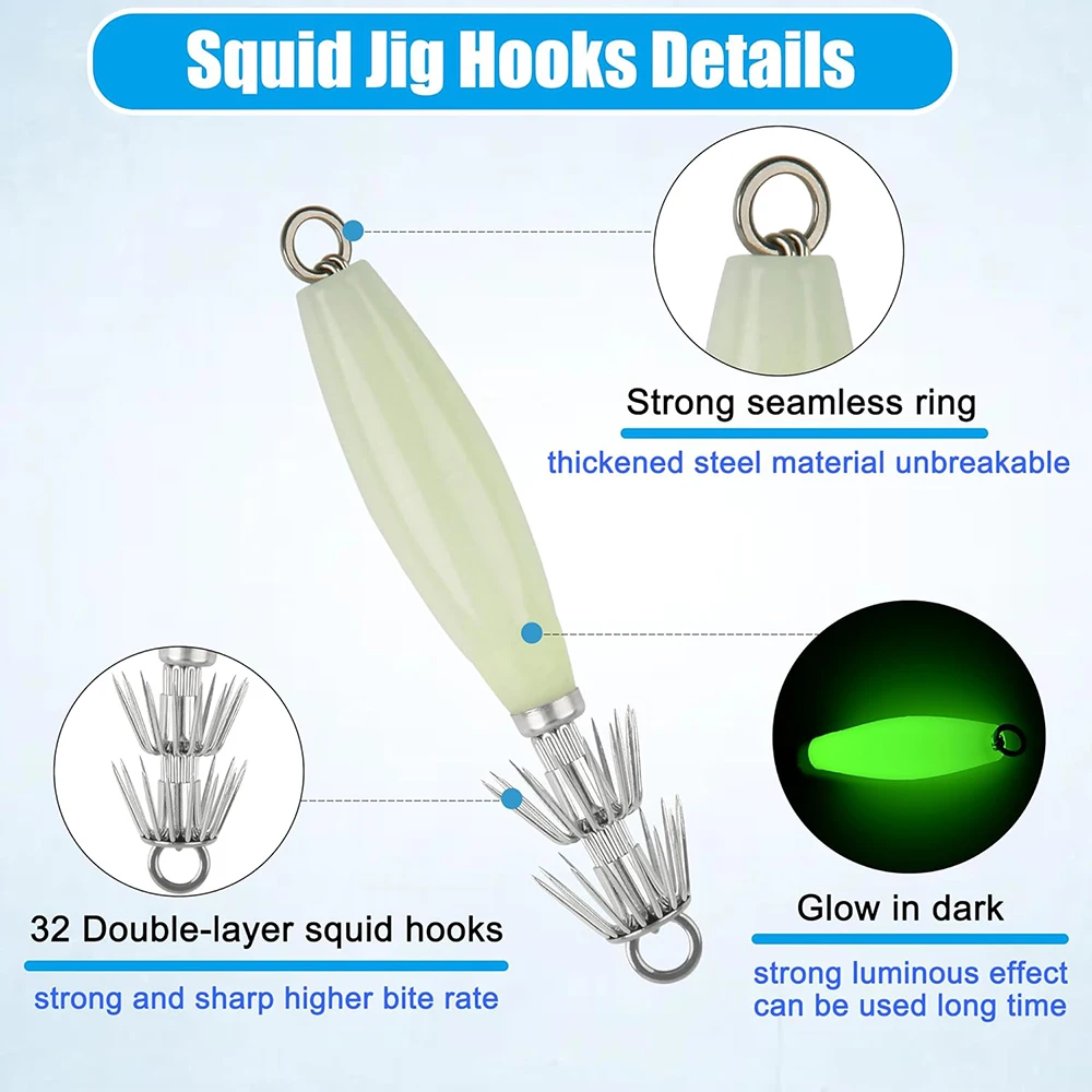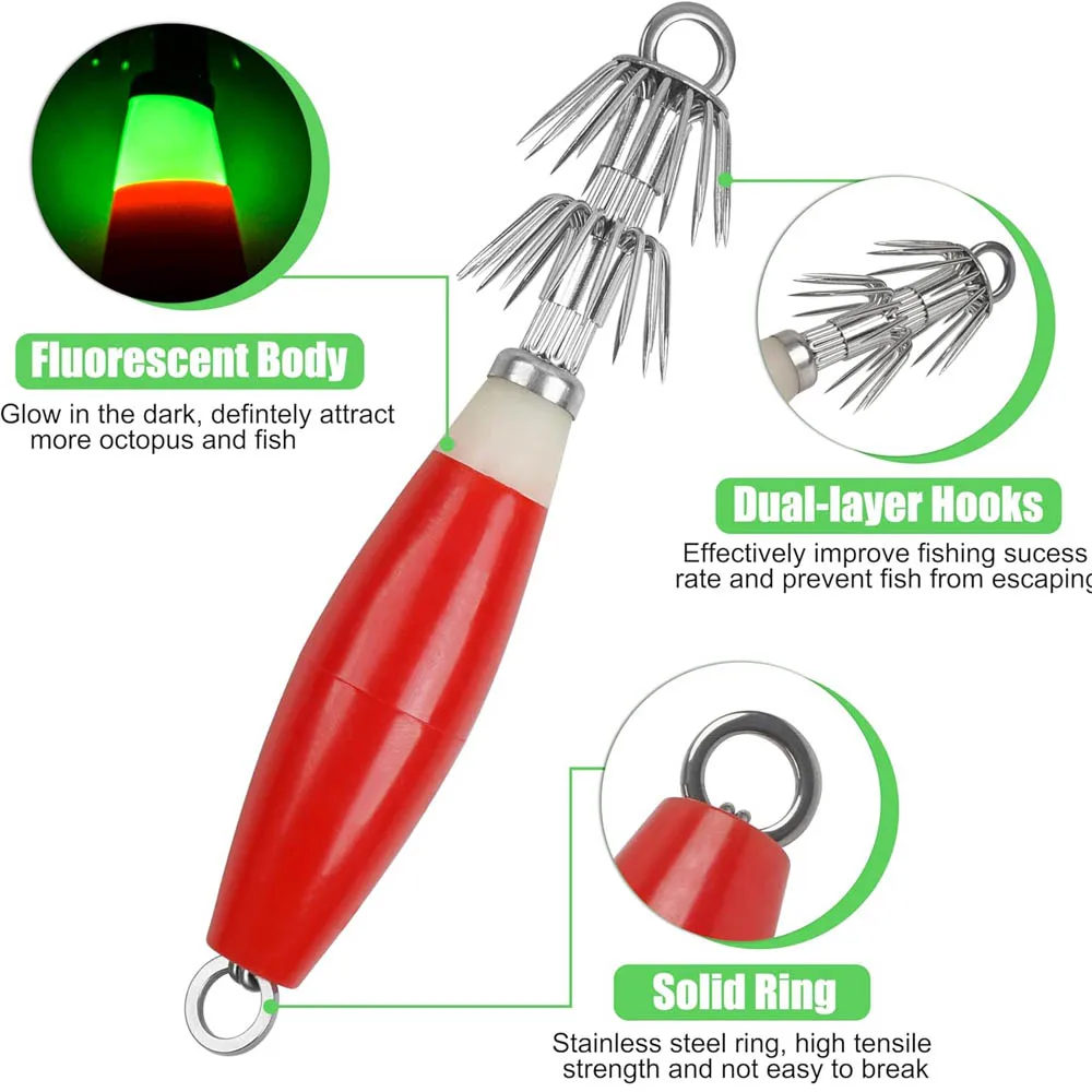 4. Esta plantilla de calamar de agua salada es ideal para capturar peces como peces de manga, calamares, pulpos y sepias. Especialmente indicado para uso nocturno o en aguas poco iluminadas.