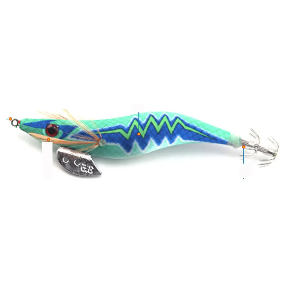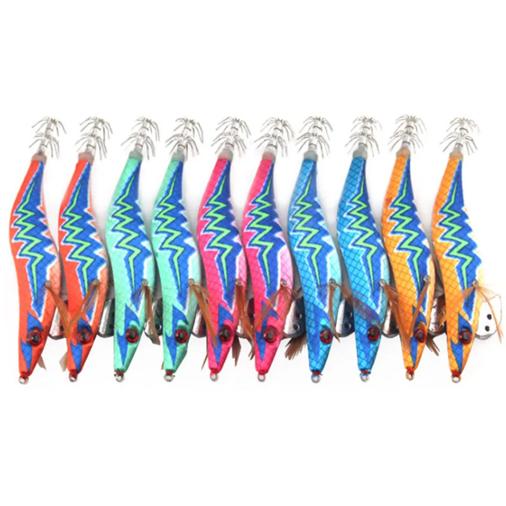 10 Uds. De cebo luminoso de madera para camarones falsos, plantilla de calamar Wobbler, señuelo de sepia, camarones de madera con 2,5 # 3.0 # 3.5 # Sub cebo de carretera con anzuelo de calamar