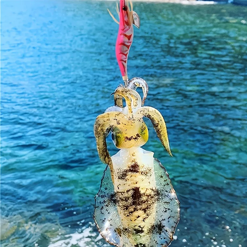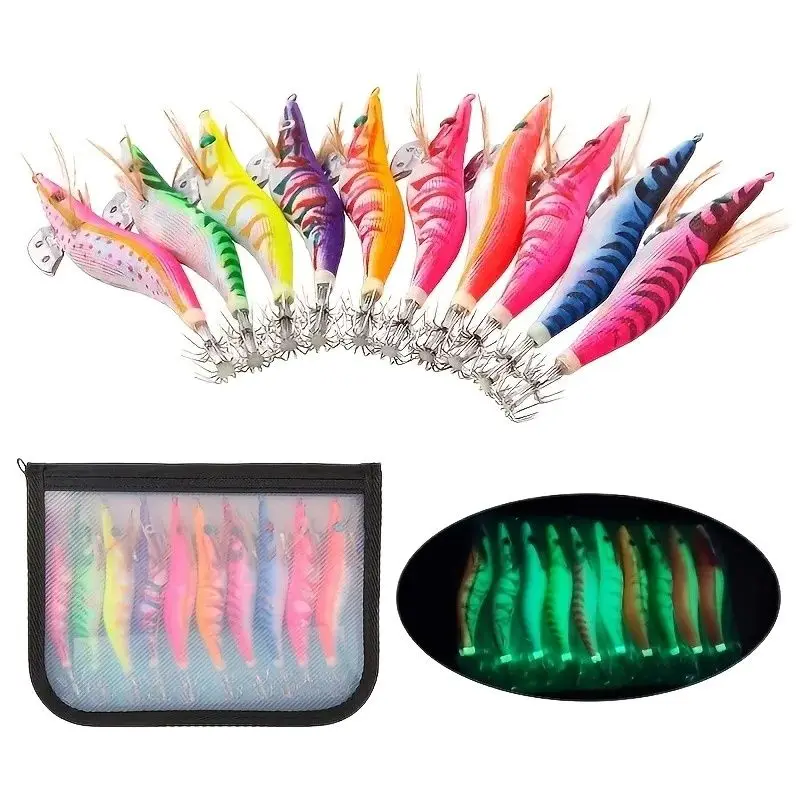 10 Uds. Cebo de pesca de calamar, anzuelo de anzuelo de camarón, ojos 3D, pulpo luminoso, plantilla de plomo, señuelos, sepia, cebo Artificial, anzuelo de pesca