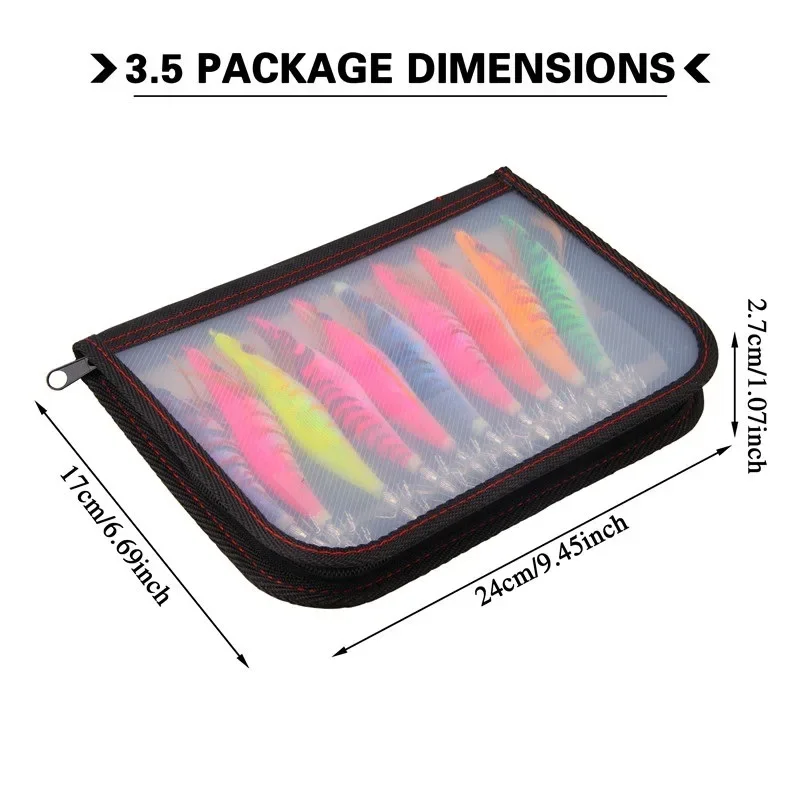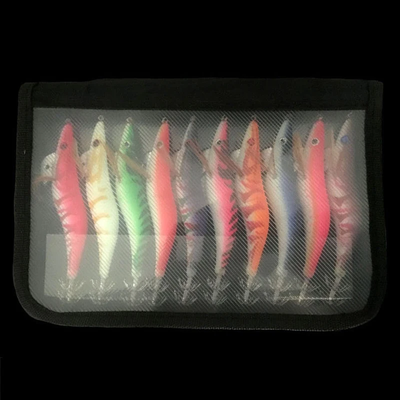 10 Uds. Cebo de calamar de pesca, anzuelo de plantilla para camarones, ojos 3D, señuelo luminoso de plomo de pulpo, sepia 3,5 # 19,5 g