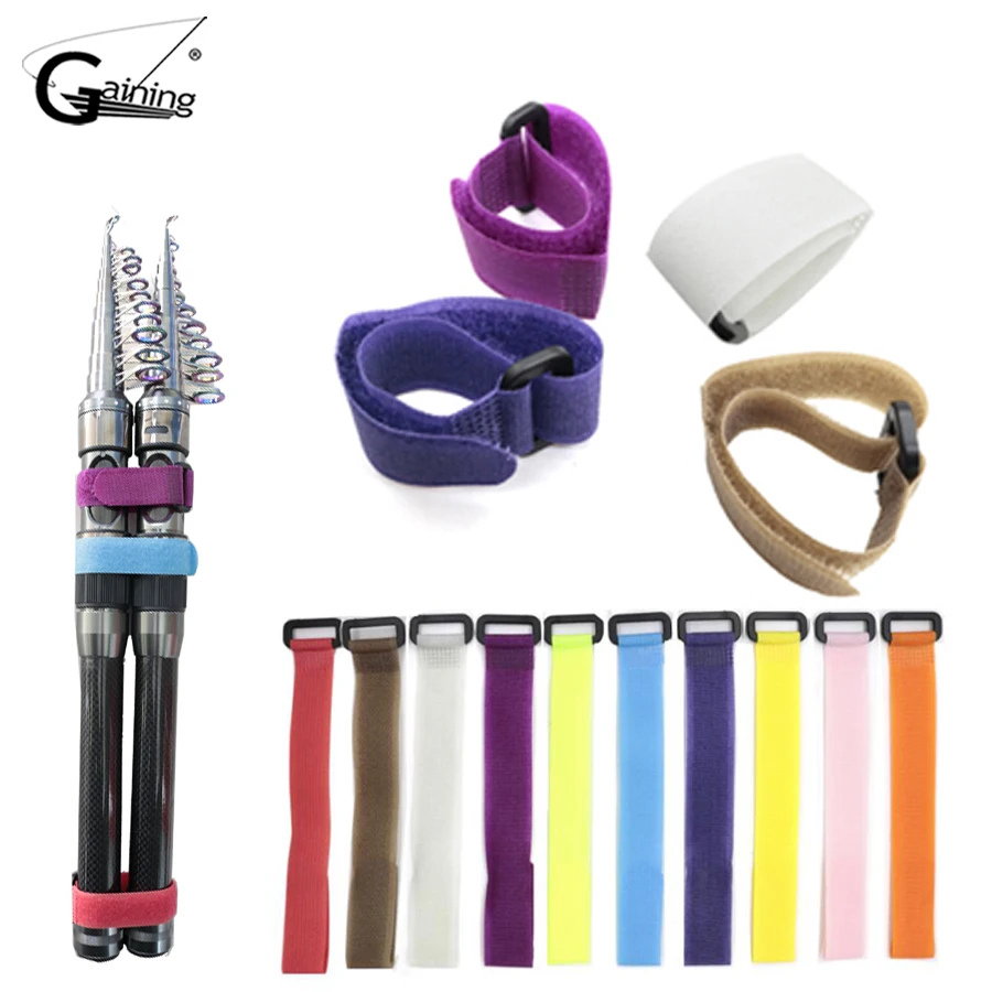 10 Uds. Cinturones para caña de pescar, 20cm, nailon, reutilizable, soporte para corbata, tirantes, gancho de sujeción, lazos para Cable, cinturón de pesca