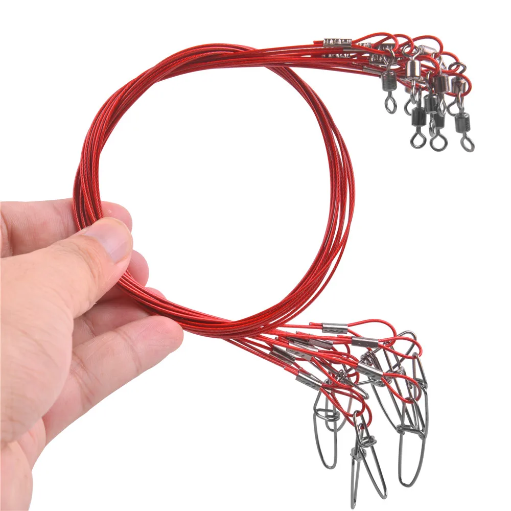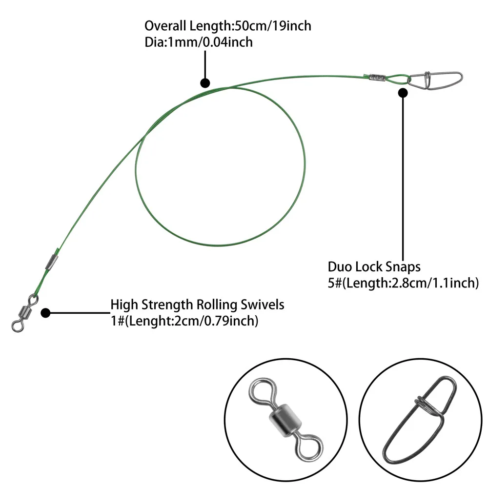 Correa de línea de pesca líder de alambre de acero de 50cm, 150Lbs/68kg con línea líder giratoria antimordedura, aparejos de pesca de carpa, 10 Uds.