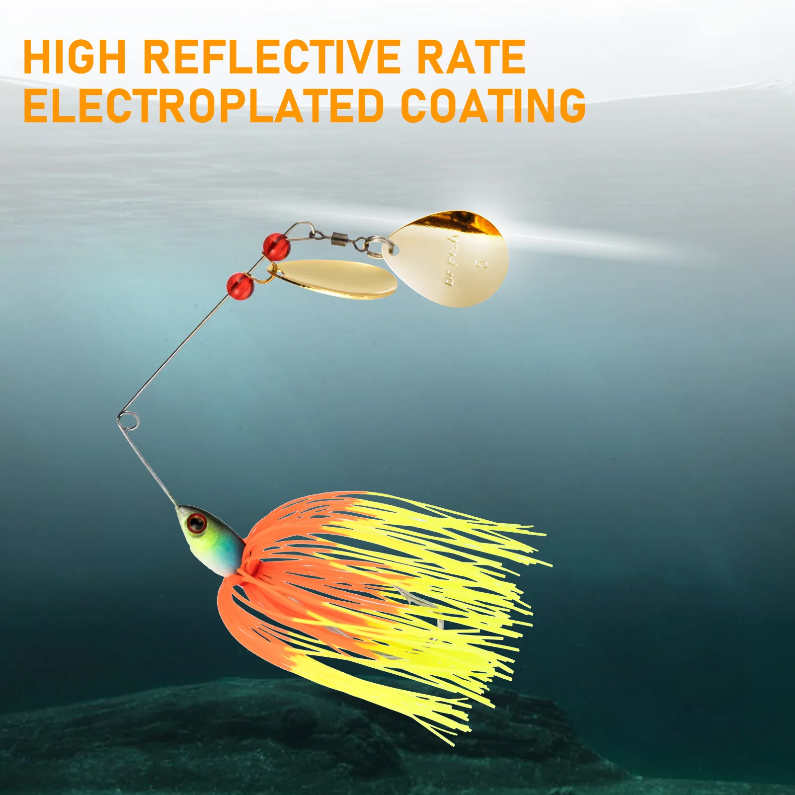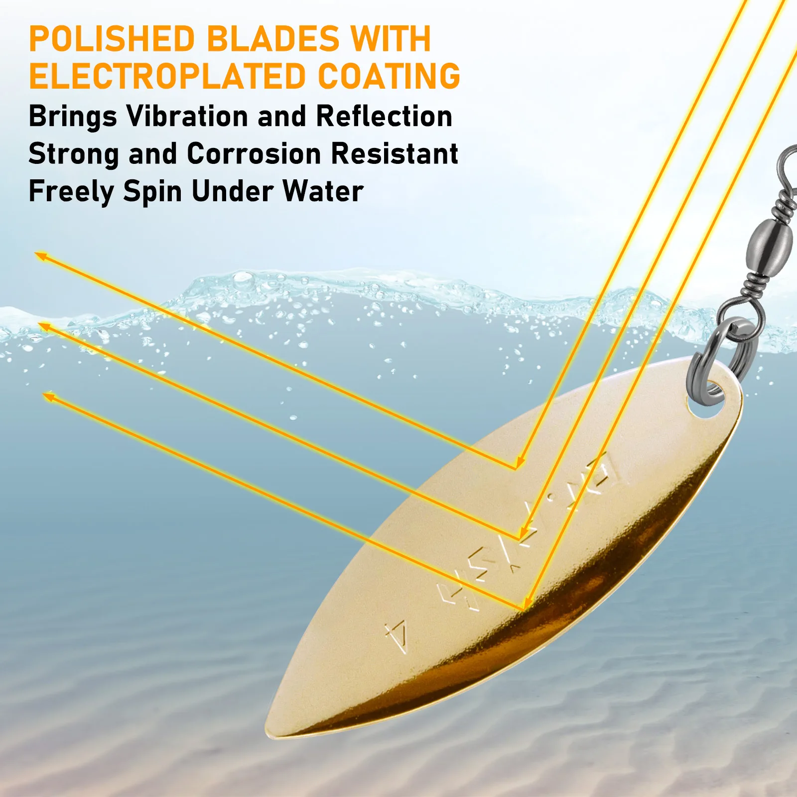 El diseño de fácil giro permite que su hoja gire libremente bajo el agua, generando un reflejo de grado completo y un destello de agua errático para atraer peces hambrientos.
