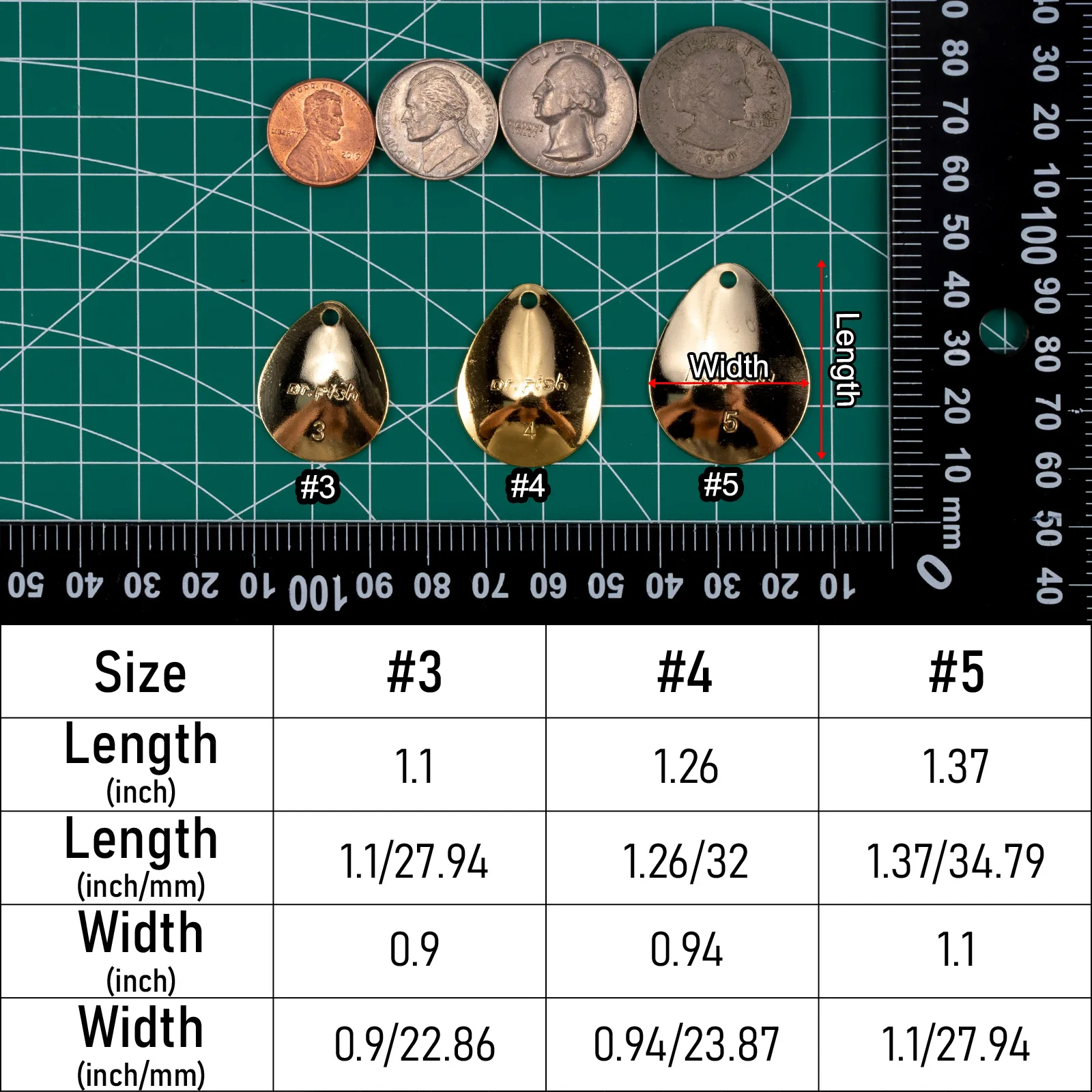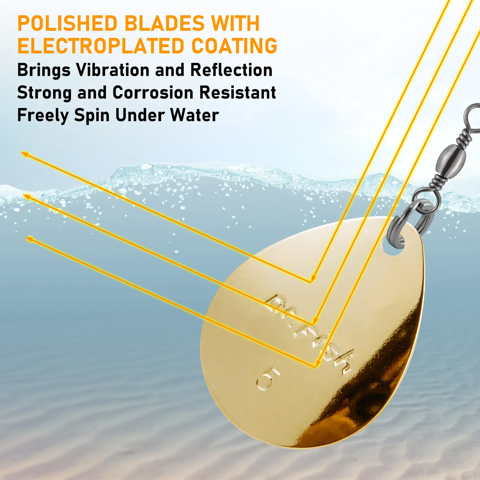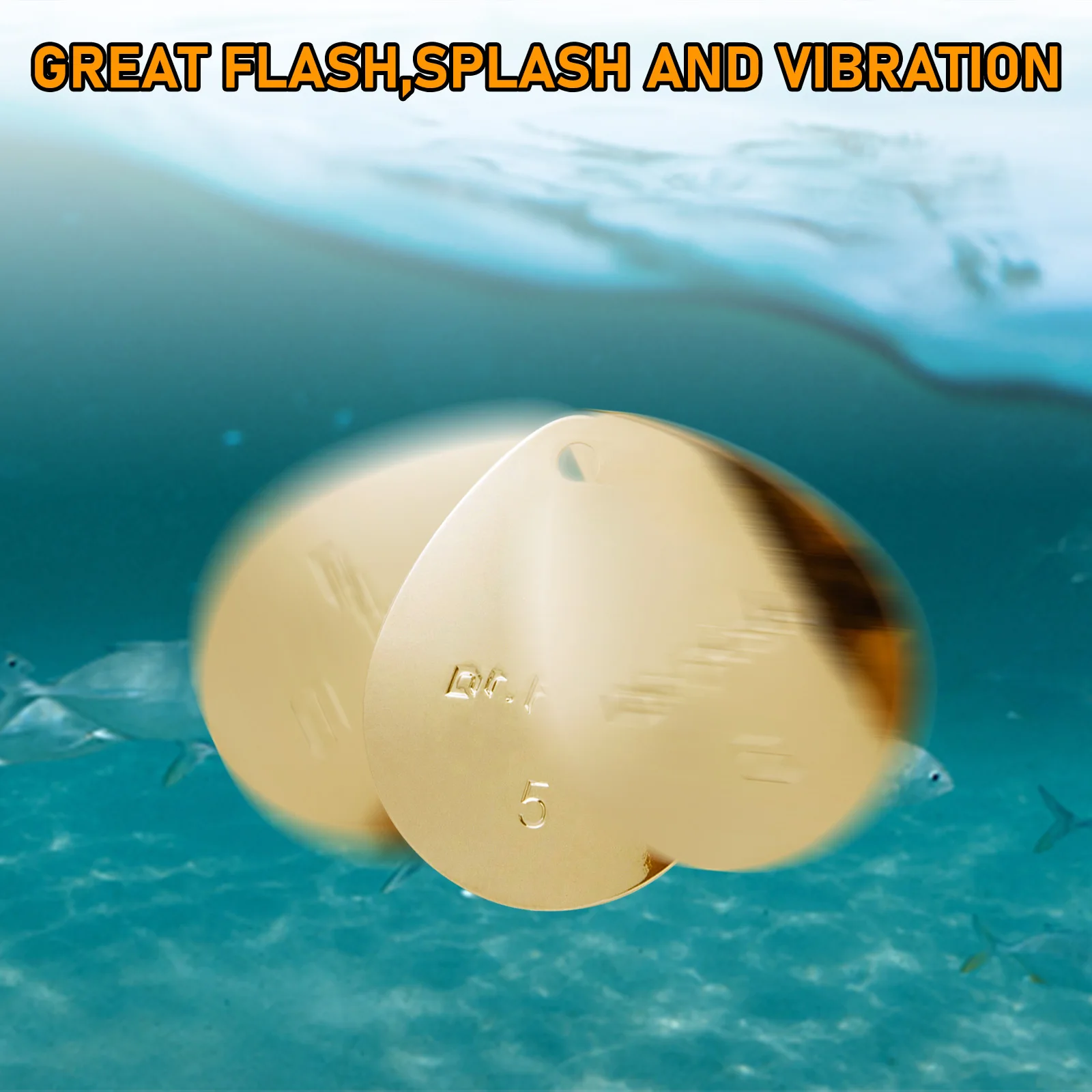 El revestimiento de oro o plata galvanizado de primera calidad brinda una mayor tasa de reflexión y agrega más destellos a su spinner.Hacer de tu spinner una campana de cena para pescar.