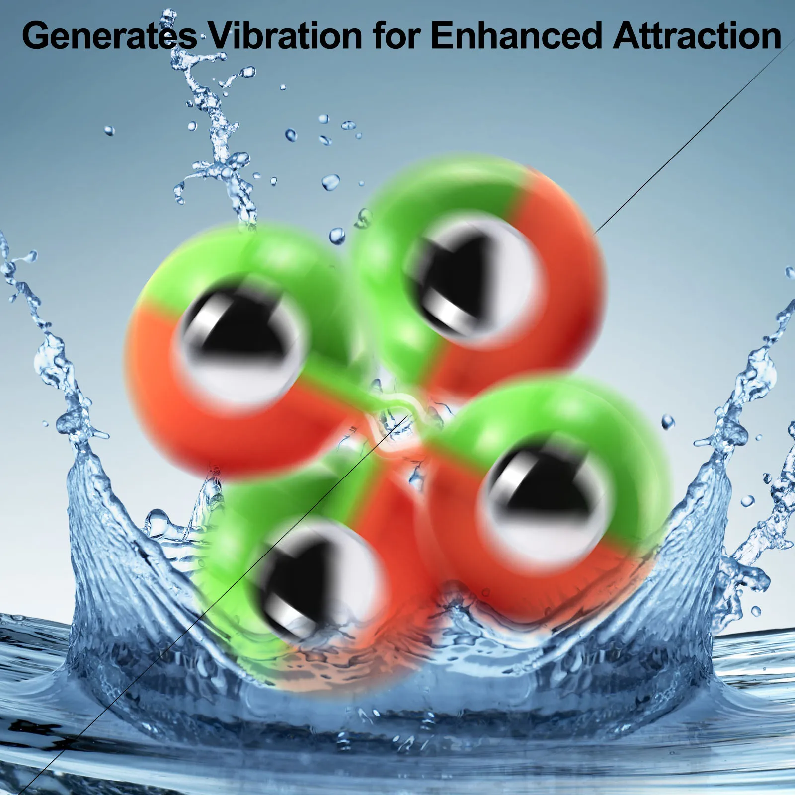 【Vibración】Cuando las cuentas de sonajeros dobles giran en el agua, vibran y desprenden turbulencias en el agua para atraer más peces.