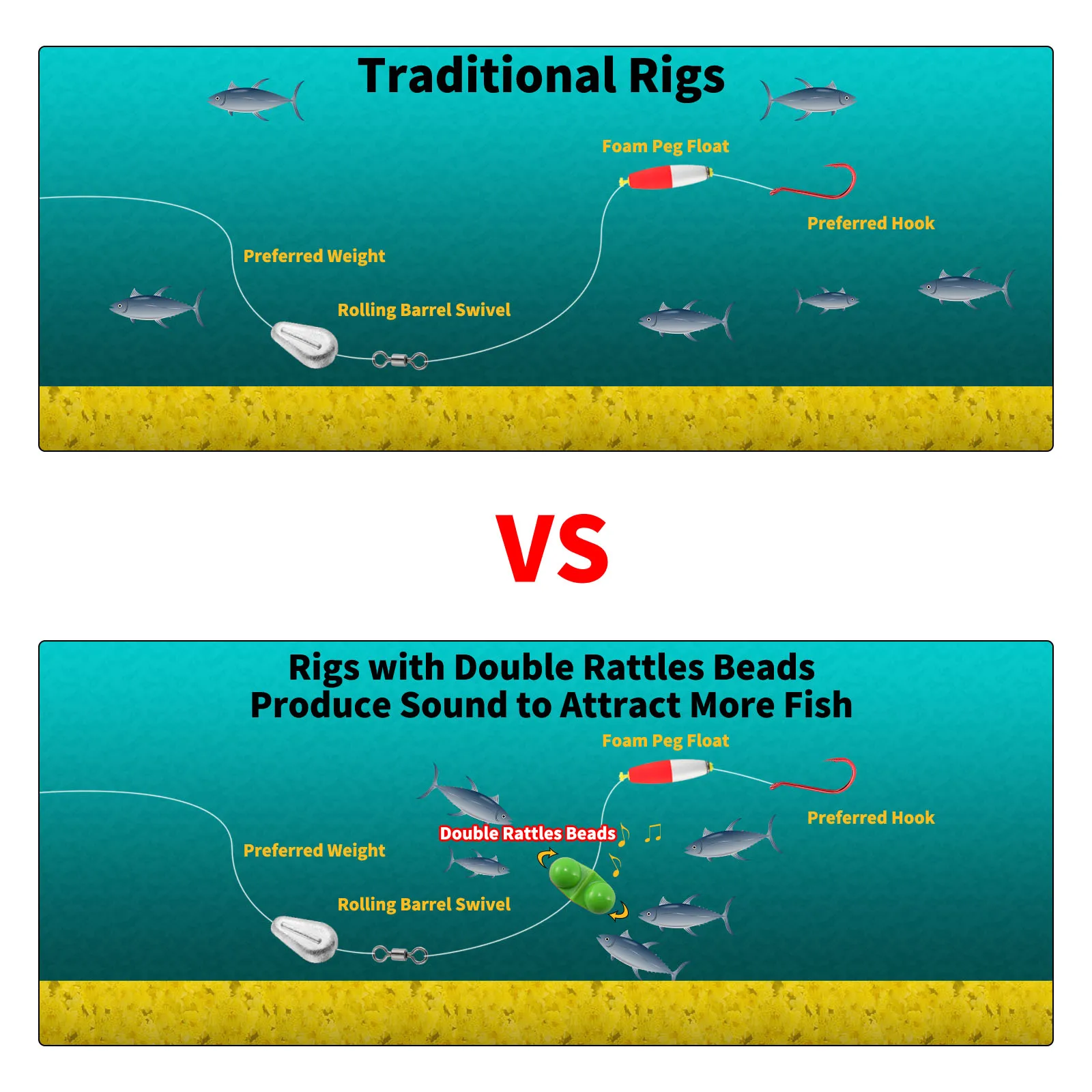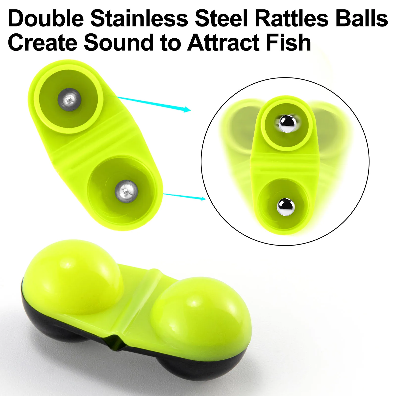 【Bolas de sonajero dobles】Las cuentas de sonajeros dobles de pesca tienen bolas de sonajeros dobles de acero inoxidable en el interior para emitir un sonido más fuerte y atraer más peces.