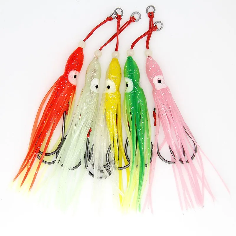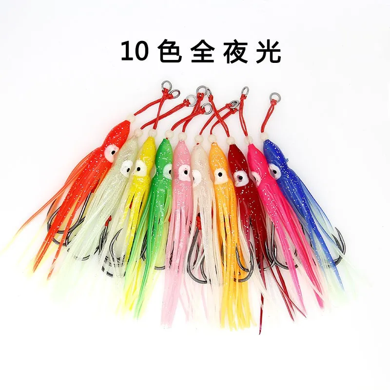 10 Uds. Gancho de asistencia de 12cm, anzuelo de anzuelo para cuchillo, falda de pargo, falda de silicona, anzuelos de goma para falda, anzuelo de jigging, juego de pesca, anzuelo afilado