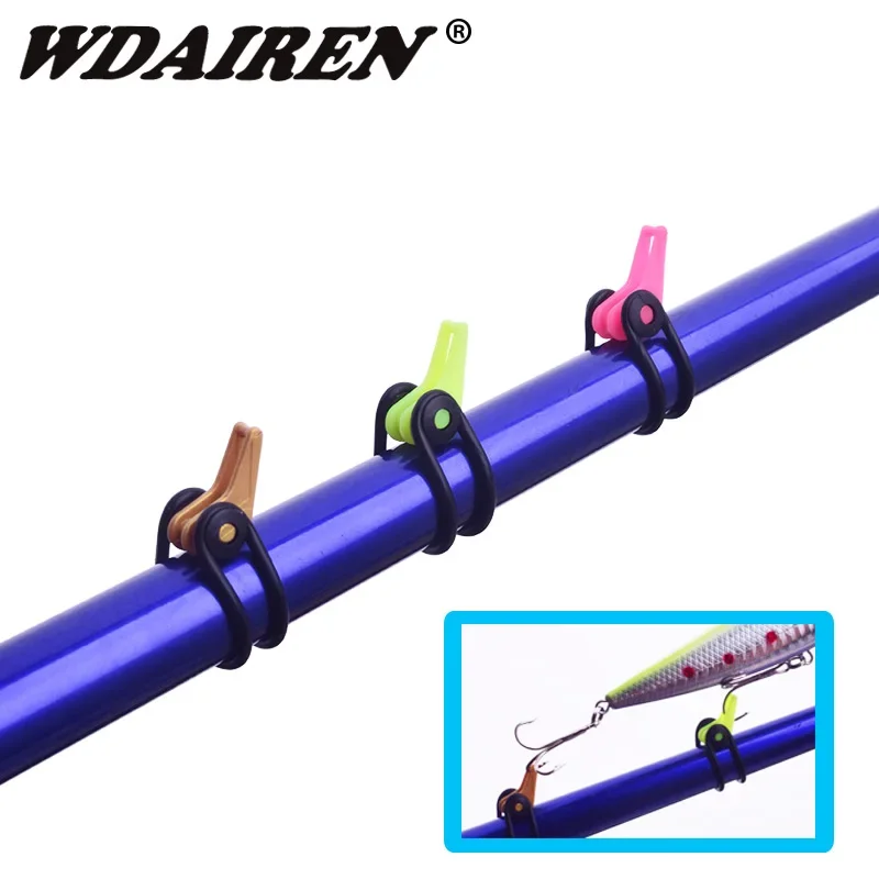 10 Uds. Gancho de plástico para caña de pescar, señuelos, cebo, cuchara, anzuelo triple, soporte de seguridad, accesorios para aparejos de pesca