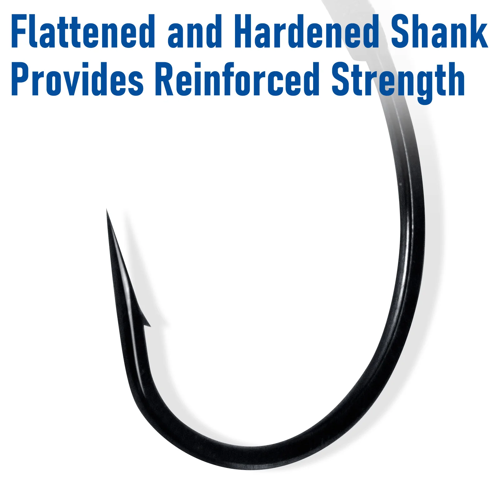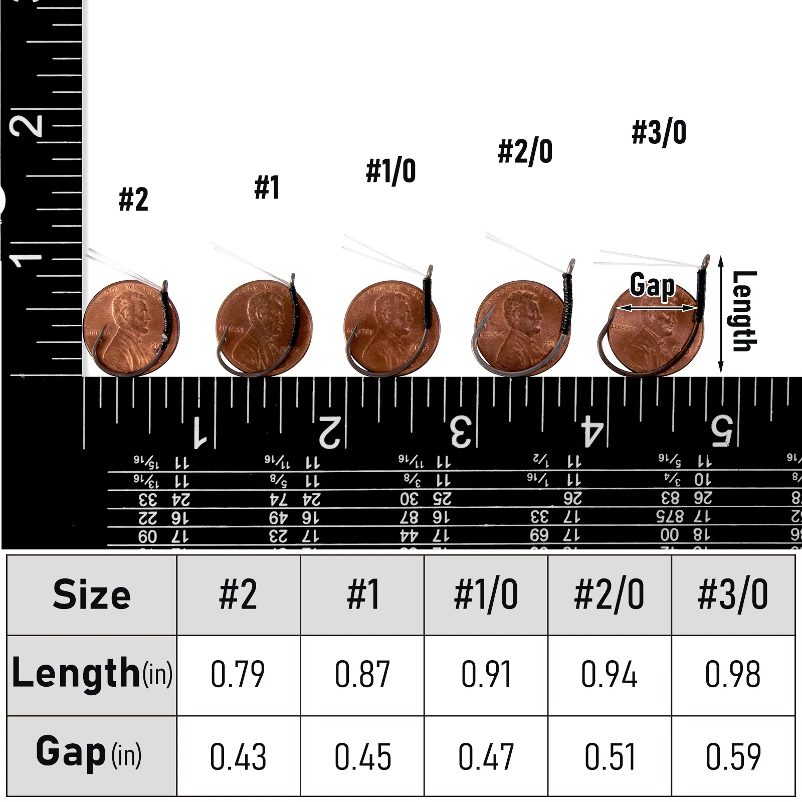 Protector contra malezas: nuestros anzuelos colgantes cuentan con un protector contra malezas de fibra envuelto de forma segura que le permitirá pescar en áreas muy cubiertas, donde el lubina grande está escondida.