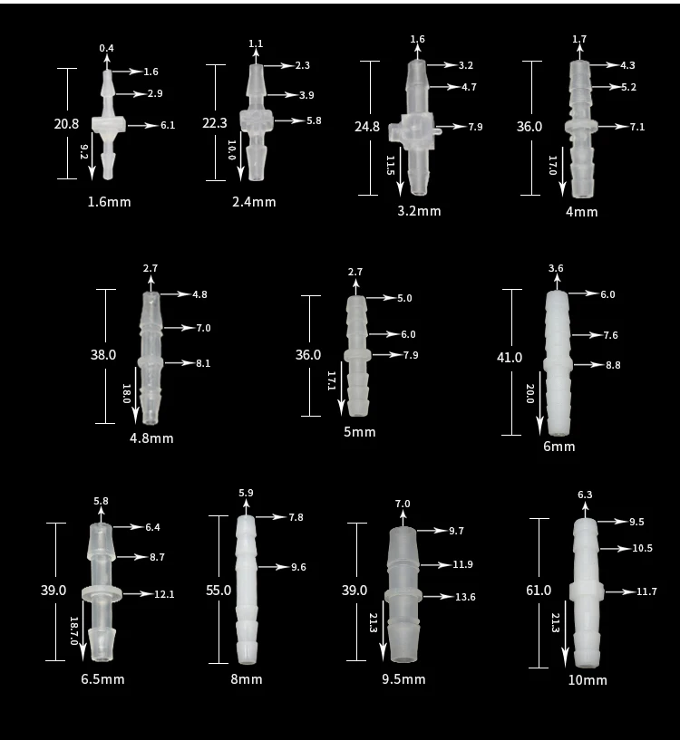 10 Uds. Junta de manguera de plástico Pagoda 1,6 2,4 3,2 4 4,8 5,6 6,4 8 9,5 10mm accesorios de conector de manguera de tubo