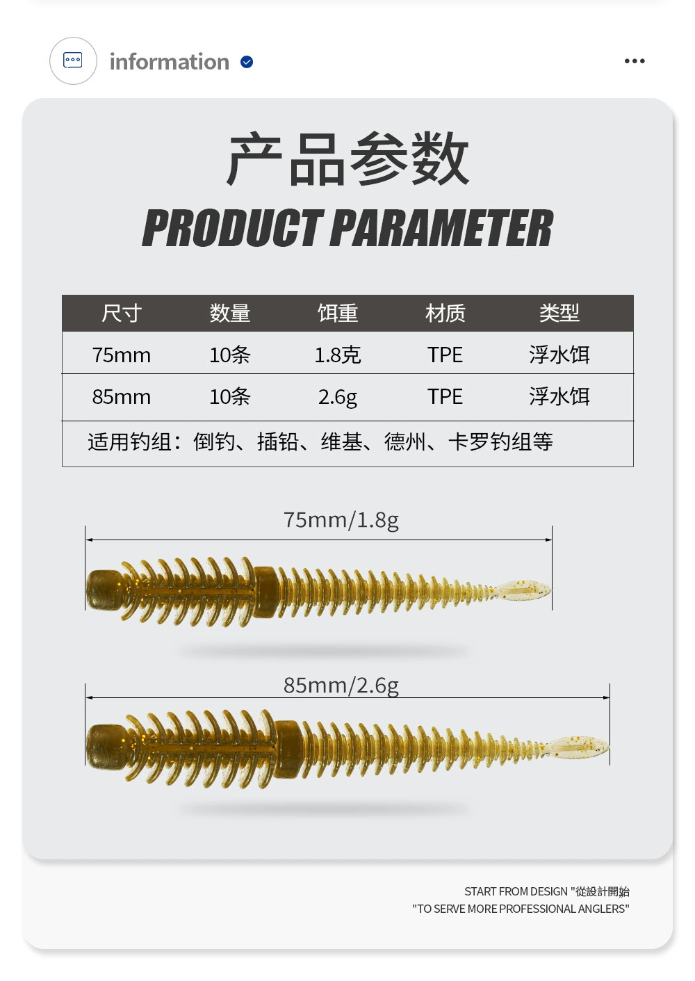 1.Material TPE de alta elasticidad, cuerpo del cebo flexible y suave
