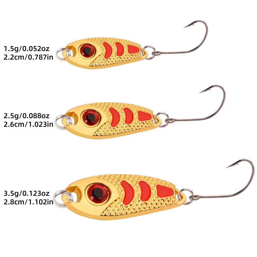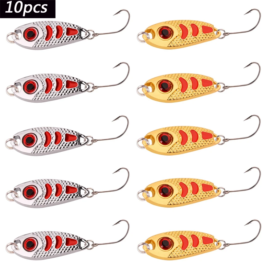 10 Uds Mini señuelo cuchara 1,5g 2,5g 3,5g Micro cebo de pesca de Metal señuelo de lentejuelas duras Spinner cuchara pescado pequeño con anzuelo único afilado