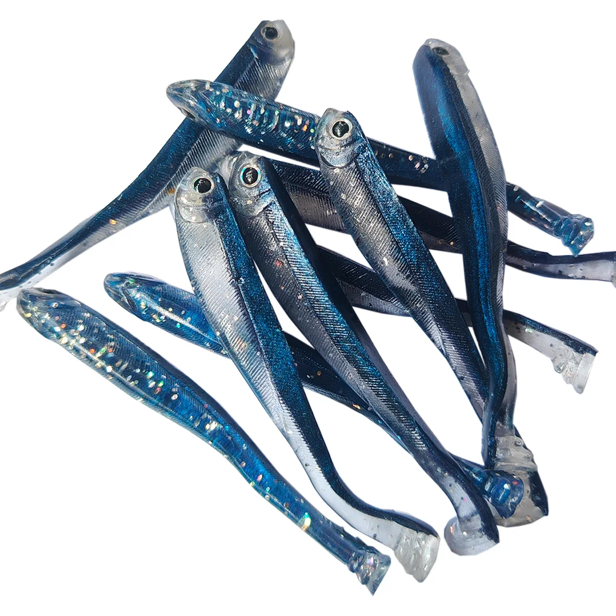 10 Uds Minnow negro Softbait 8cm/3,56g Shad Swimbait gusano cebo Jigging señuelo de pesca aparejos señuelo de silicona suave