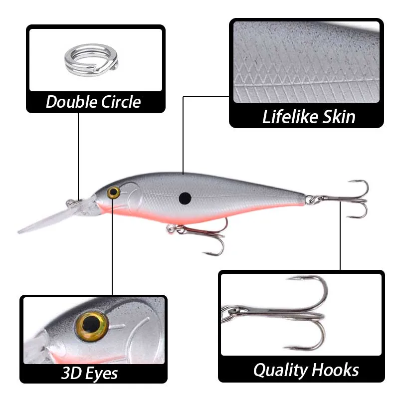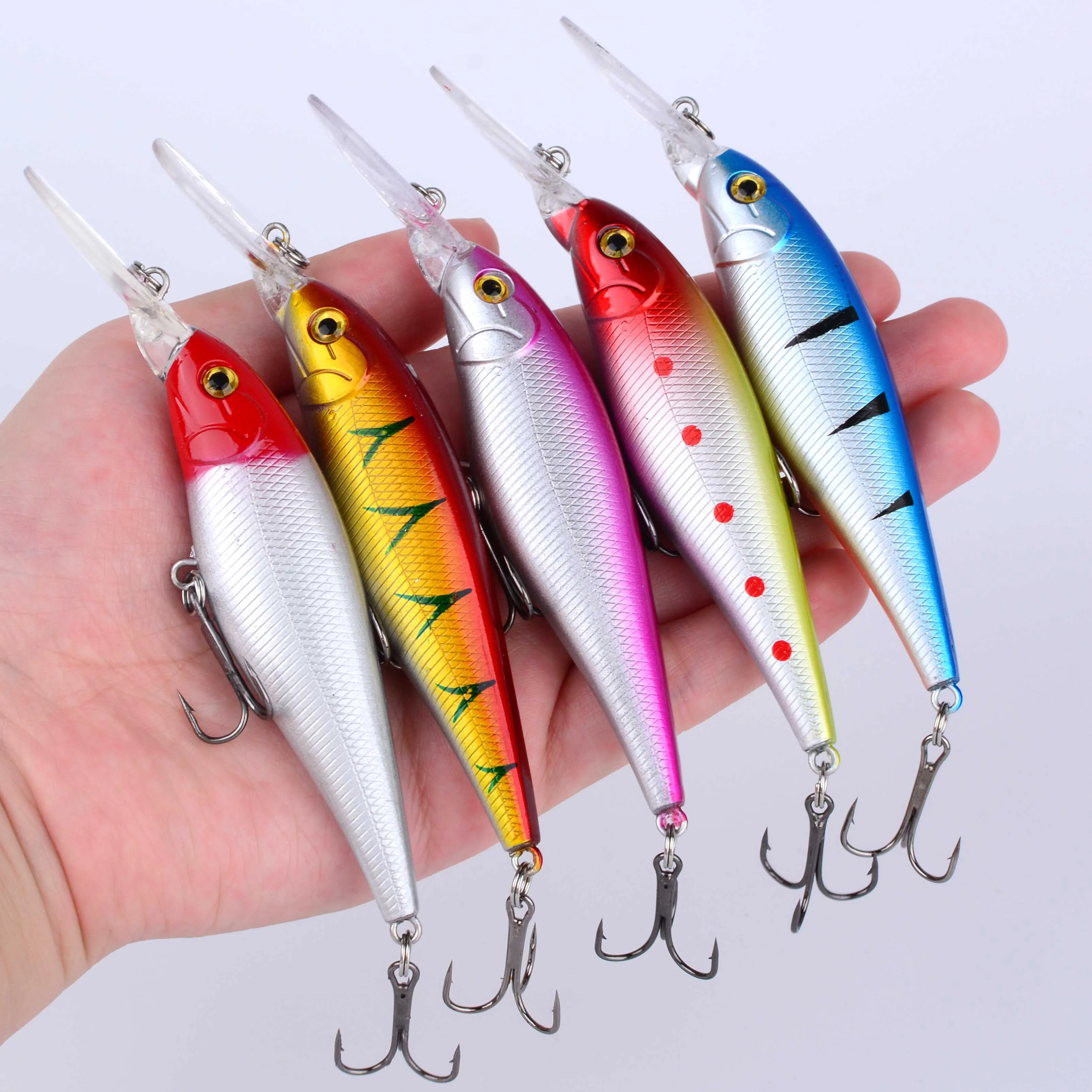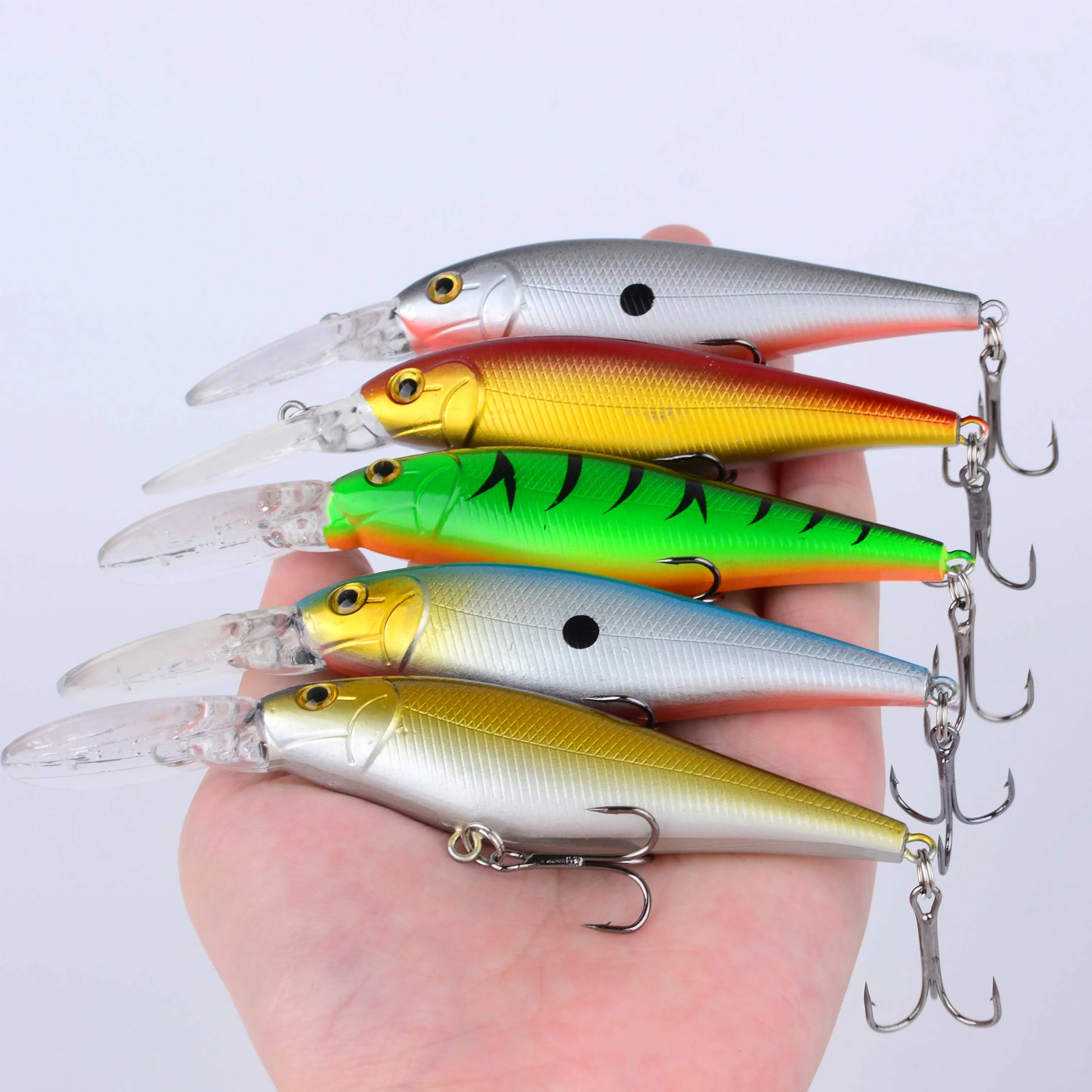 10 Uds Minnow señuelo de Pesca flotante duro Wobbler cebo Crankbait carpa lubina rayada Pesca aparejos de Pesca SwimBait