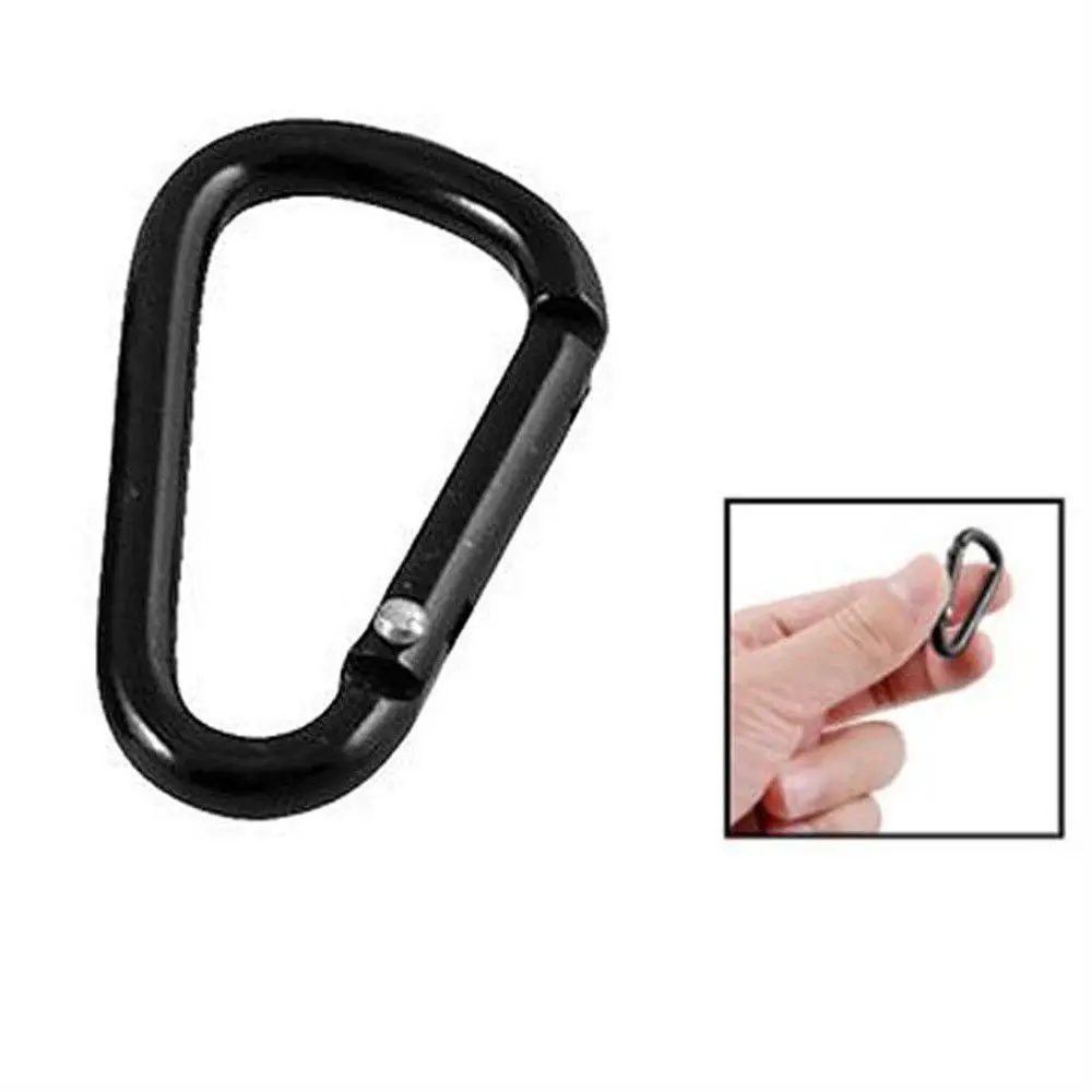 Name: 4# D-shaped aluminum alloy carabiner Shape: D-shaped Material: Aluminum alloy Line Diameter:4mm Size:40*22mm Color: Black Surface treatment: electrophoresis process Features: Lightweight, cheap, widely used in luggage, toys, water bottles, backpacks, key ring, etc Package includes:10pcs carabiner