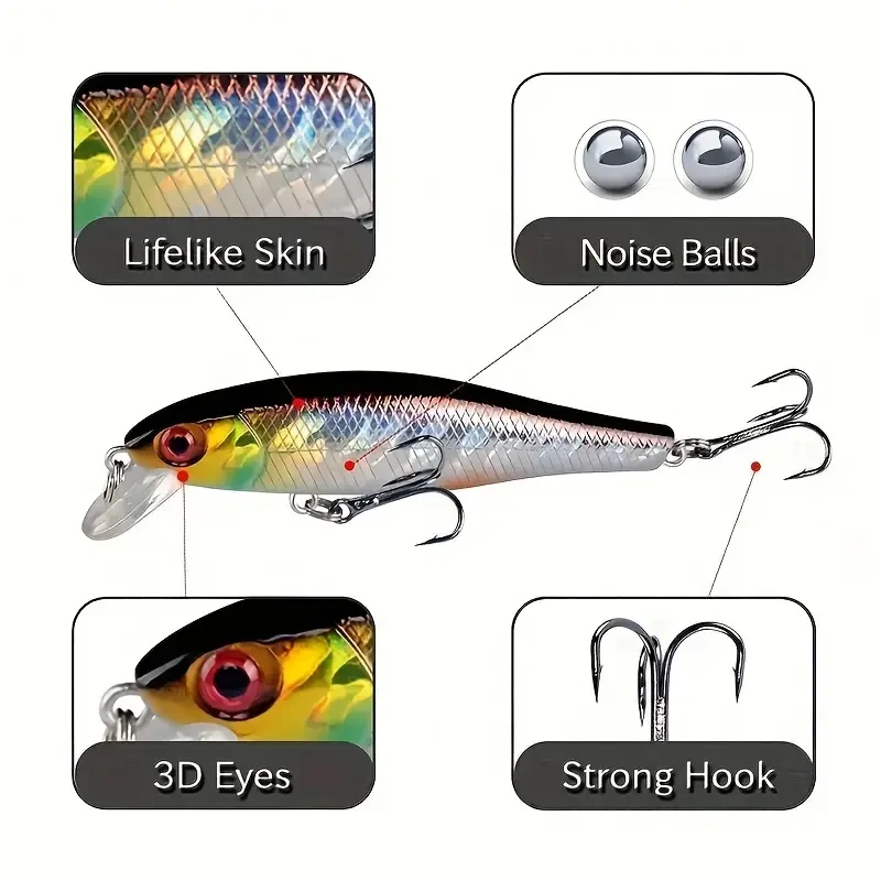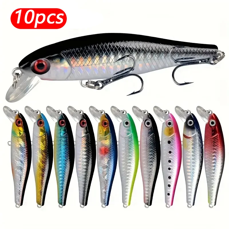 10 Uds modelo caliente pececillo flotante Señuelos de pesca Jerkbait Bass Pike Carkbait Wobblers Swimbait cebo profesional