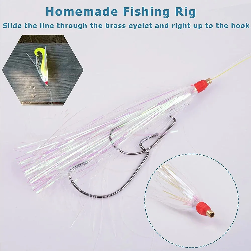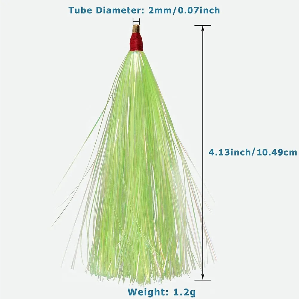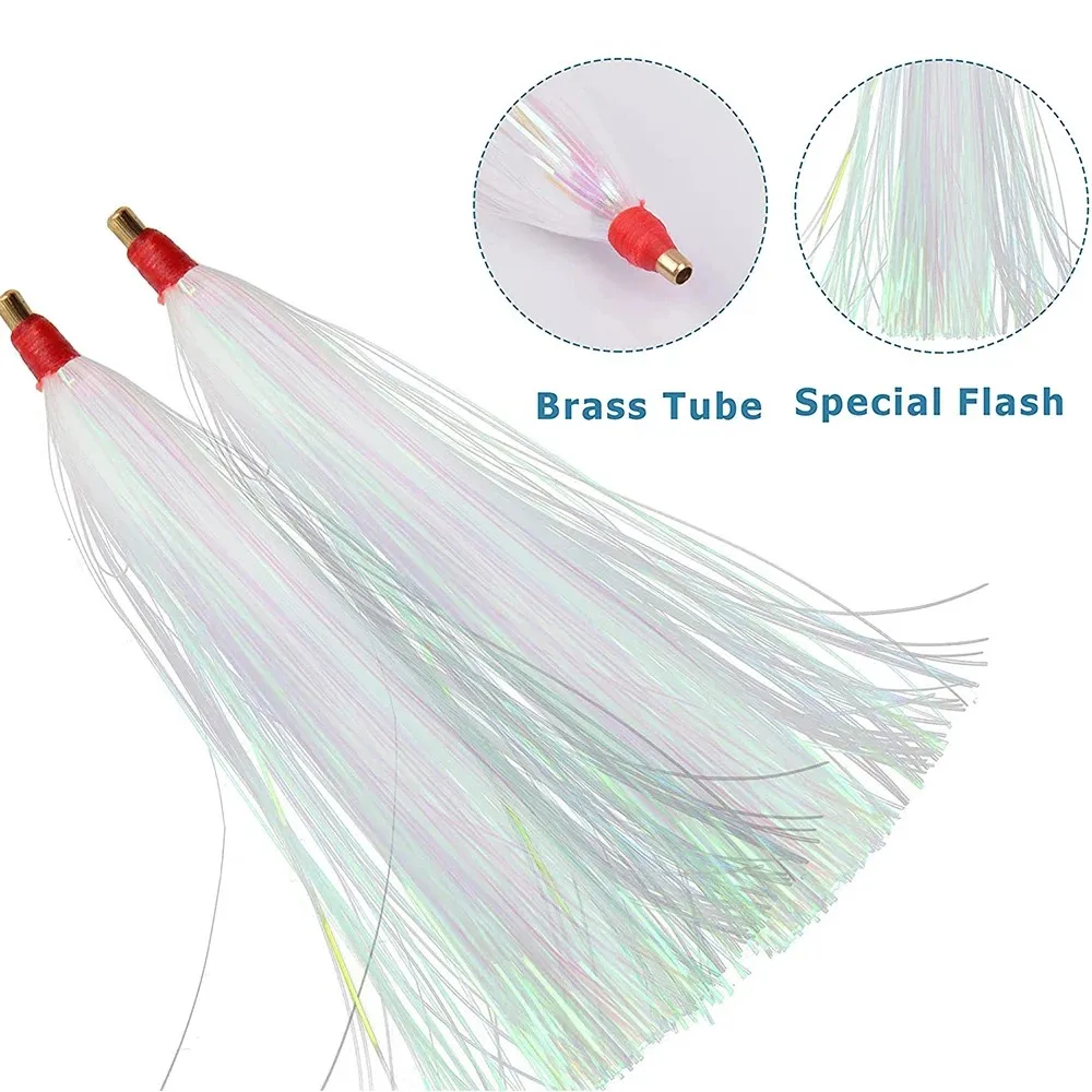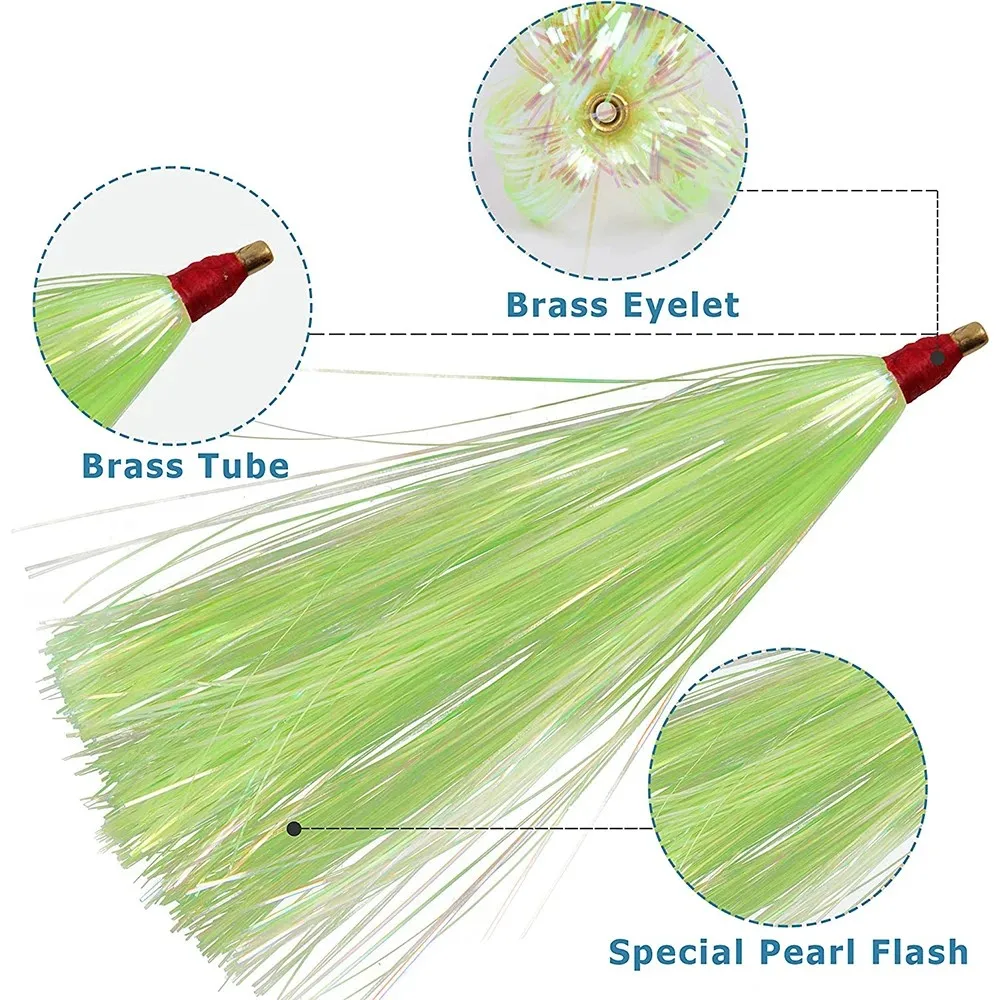 Bien hecho: teaser flash Mylar con pelo de cristal y material flash especial perlado con tubo de latón y borde endurecido.Fuerte y duradero para la pesca en agua salada.