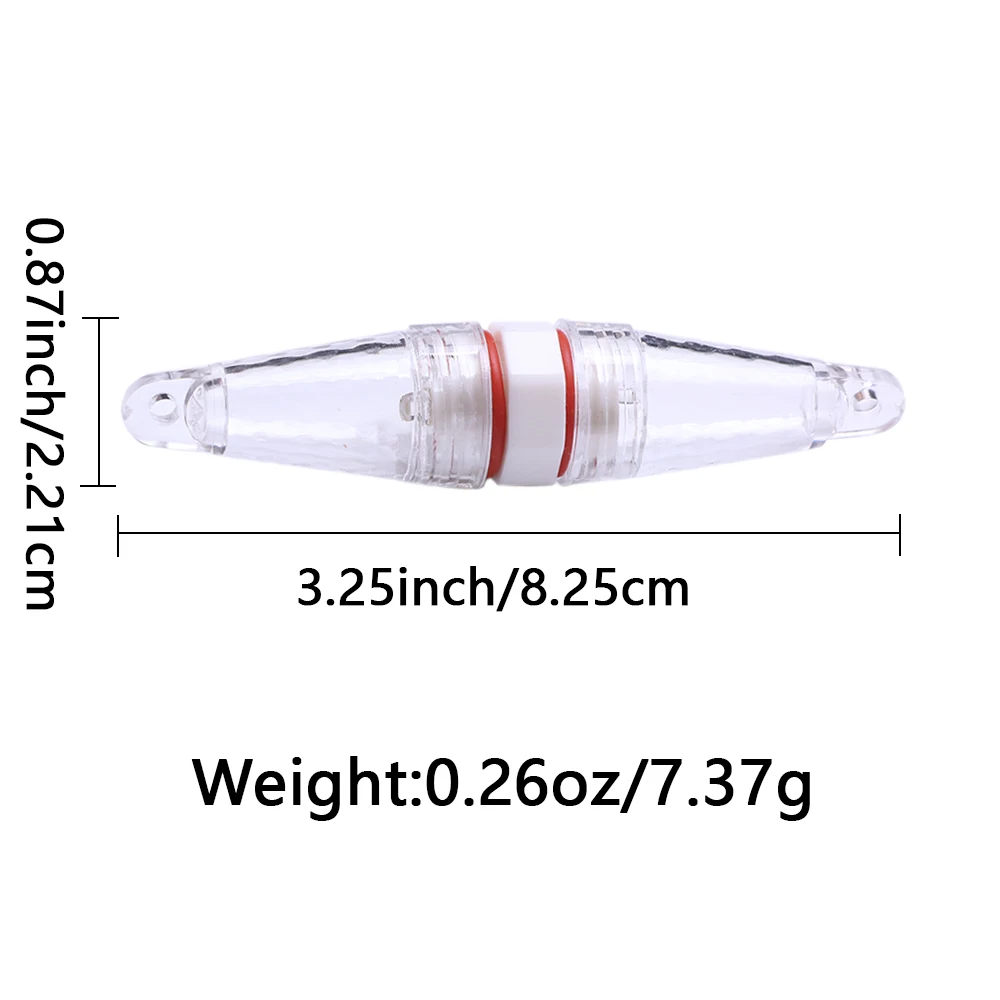 1. Adoptando un diseño con luces intermitentes en ambos extremos, puede emitir buena luz en el agua y la luz parpadeante y cambiante atrae eficazmente a los peces en el agua.