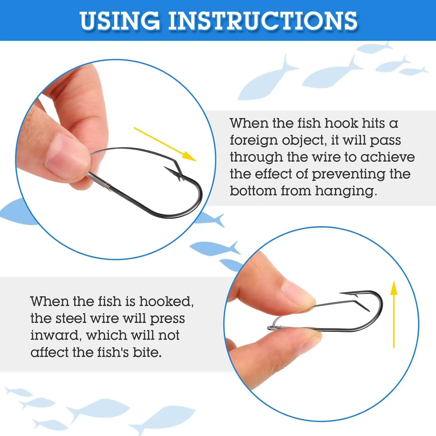 10 Uds. Nuevos anzuelos de pesca de acero rico en carbono con diseño inferior antienganches-anzuelos individuales para pescar con protección dental