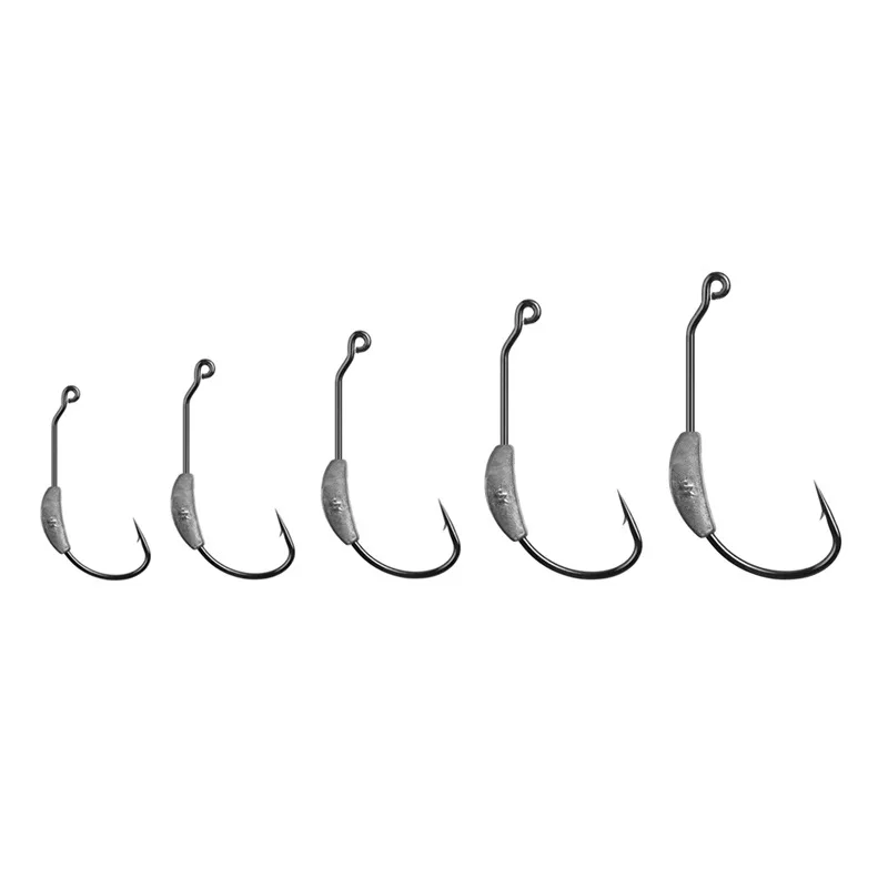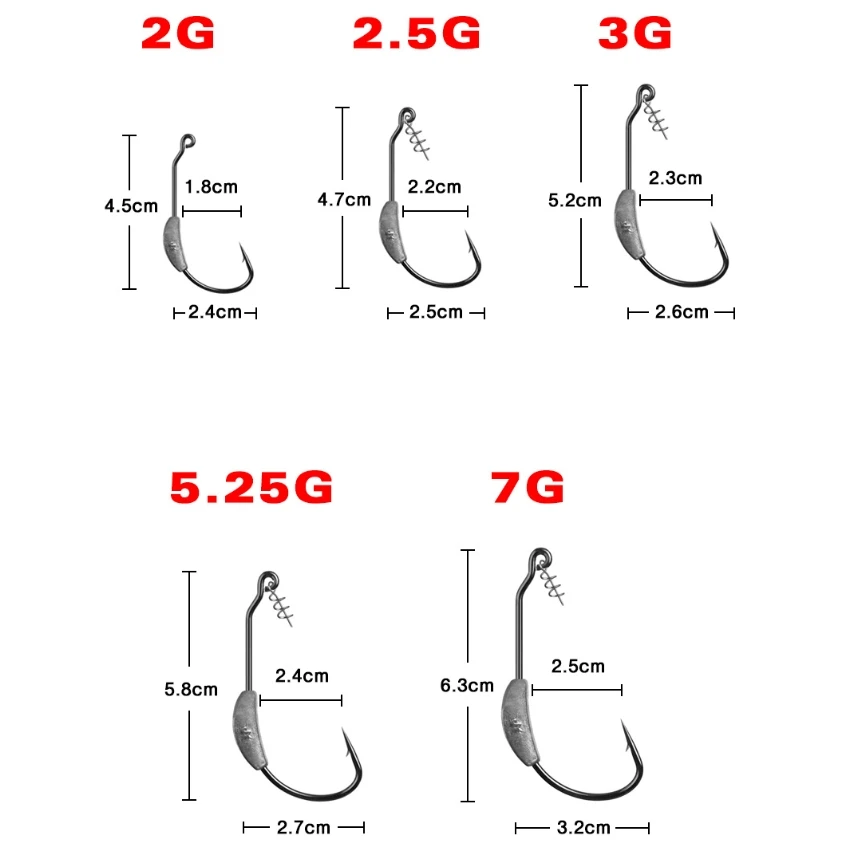10 Uds plantilla cabeza de manivela anzuelo de púas 2g 3g 5,25g 7g señuelo suave gusano Offset anzuelo resorte bloqueo Pin Pesca Texas aparejos de Pesca