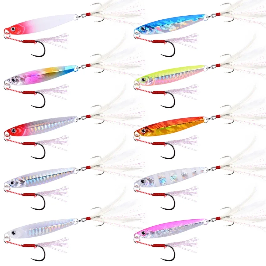10 Uds. Plantilla de fundición de arrastre Shore Jigging cuchara 10G 21G 28G 40G 60G señuelo de lubina cebo Artificial equipo de pesca para atún Mahi Marlin