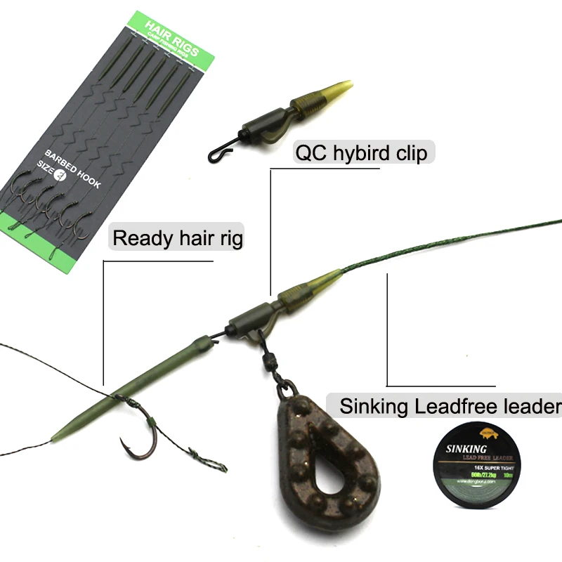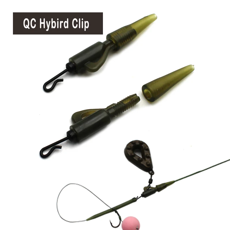 10 QC Hybird Clip cola goma Material de alta calidad Anti enredos mangas Ready Hiar Rig para aparejos de pesca de carpa accesorios equipo
