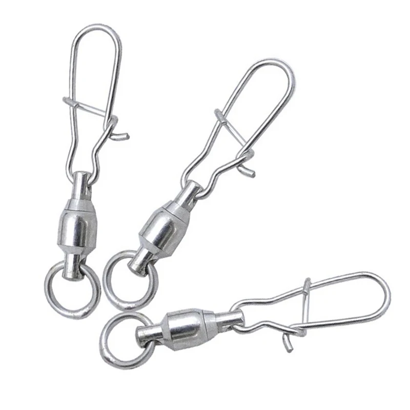 Descripción :10 unids/ rodamiento de bolas giratorio de pesca con bonito Snap plata acero inoxidable duro señuelo de pesca conector accesorios aparejos