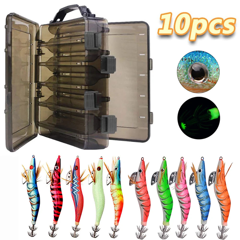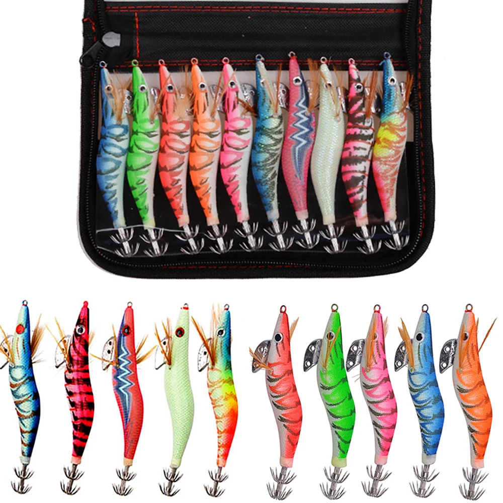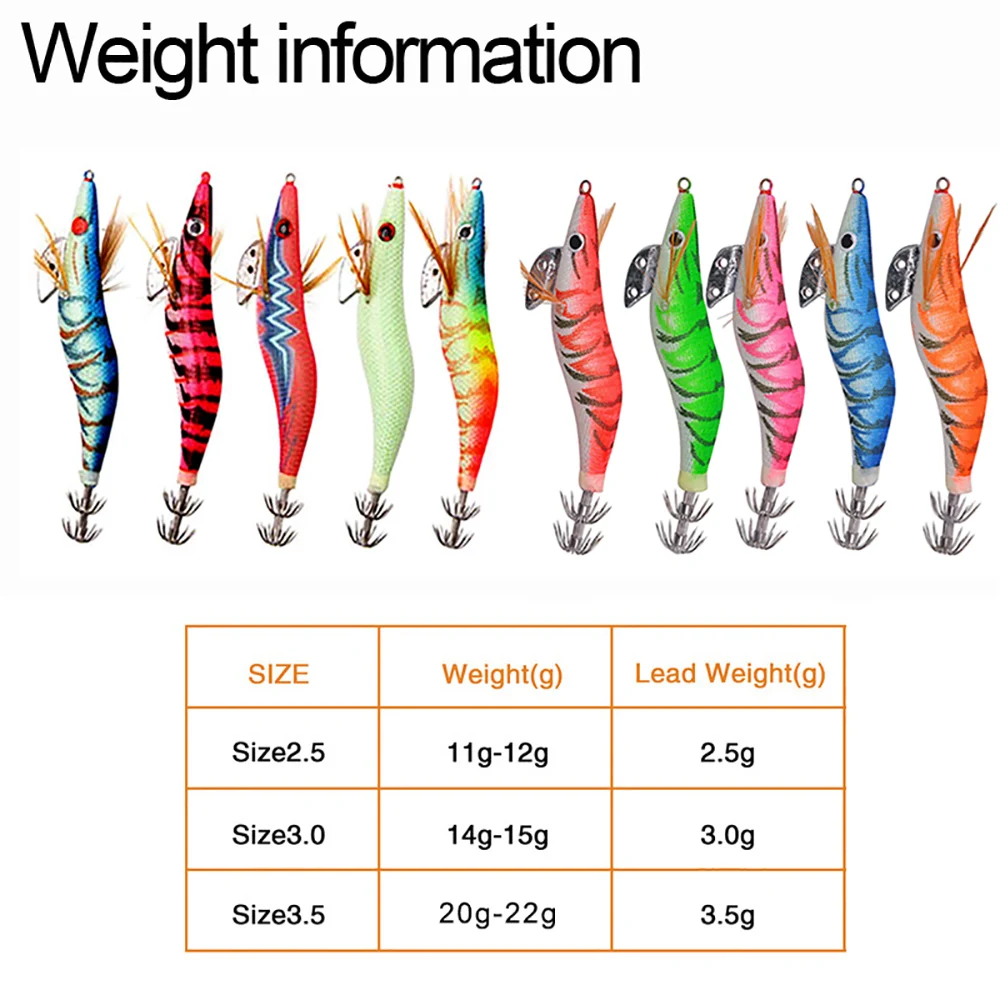 1.Cuerpo de camarón de plástico de primera calidad con ganchos de acero inoxidable de doble capa, los señuelos de calamar permiten la máxima resistencia al luchar contra calamares grandes.