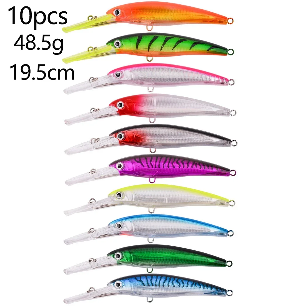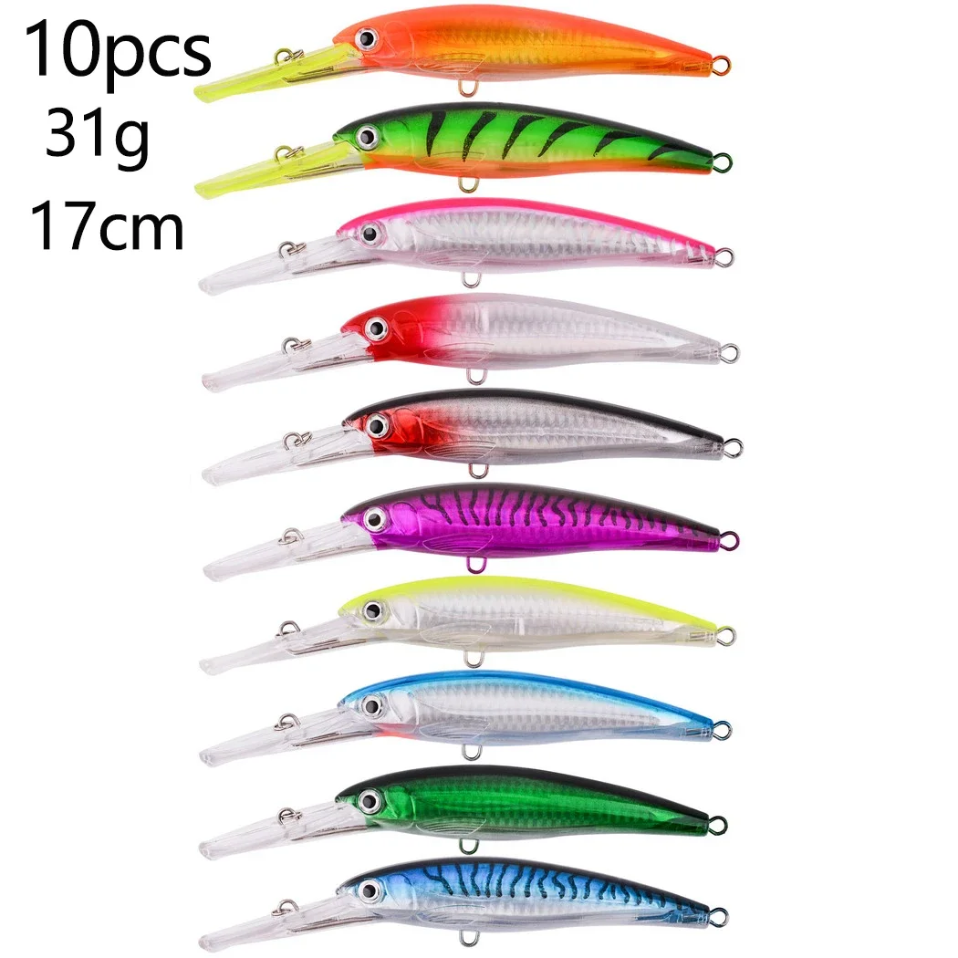 10 Uds señuelo de pesca flotante 32g 50g 75g cebo de pececillo de fundición larga agua salada lubina cebo duro Minnow para aparejos de pesca de lubina