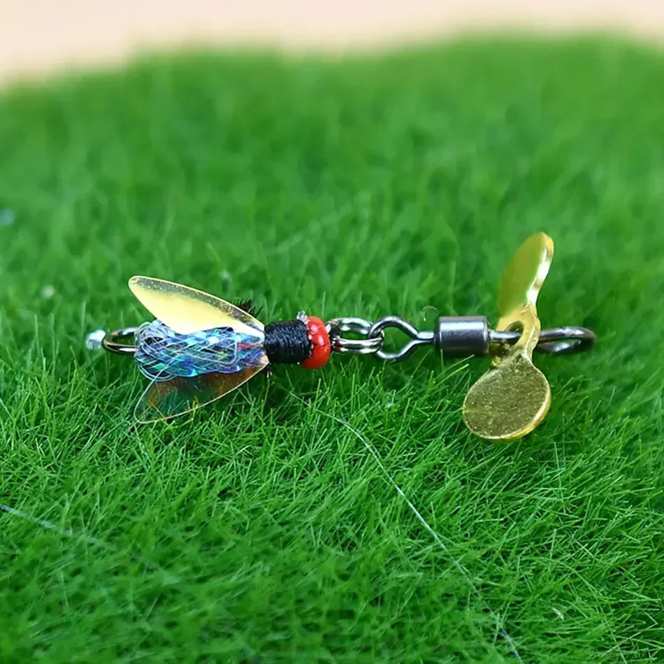 10 Uds. Señuelos biónicos de abeja falsa con alas Scud Fly Bug insecto cebo gusano mosca anzuelo Spinner caja de aparejos de pesca para pesca con caña - imagen 3
