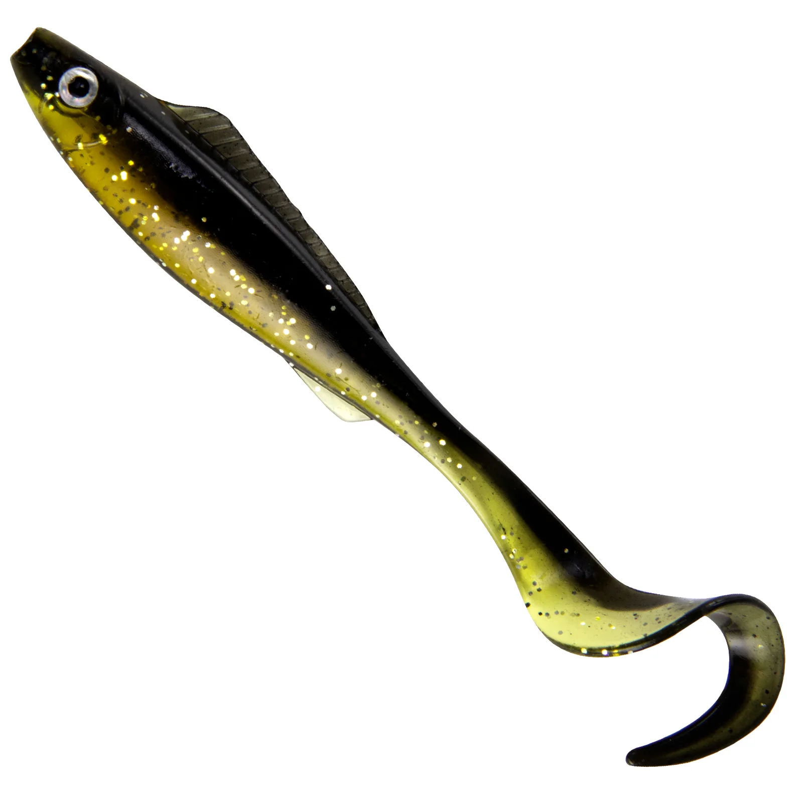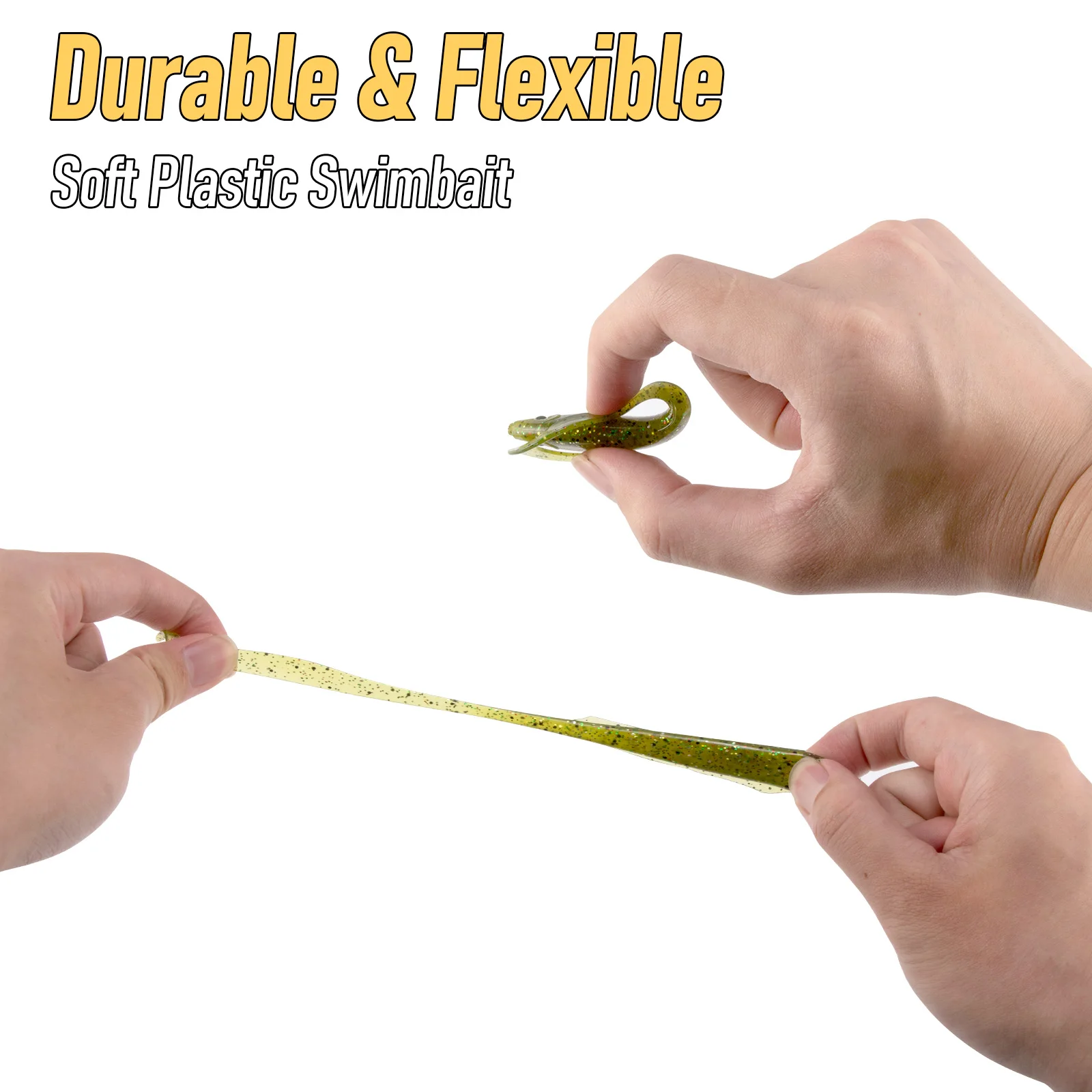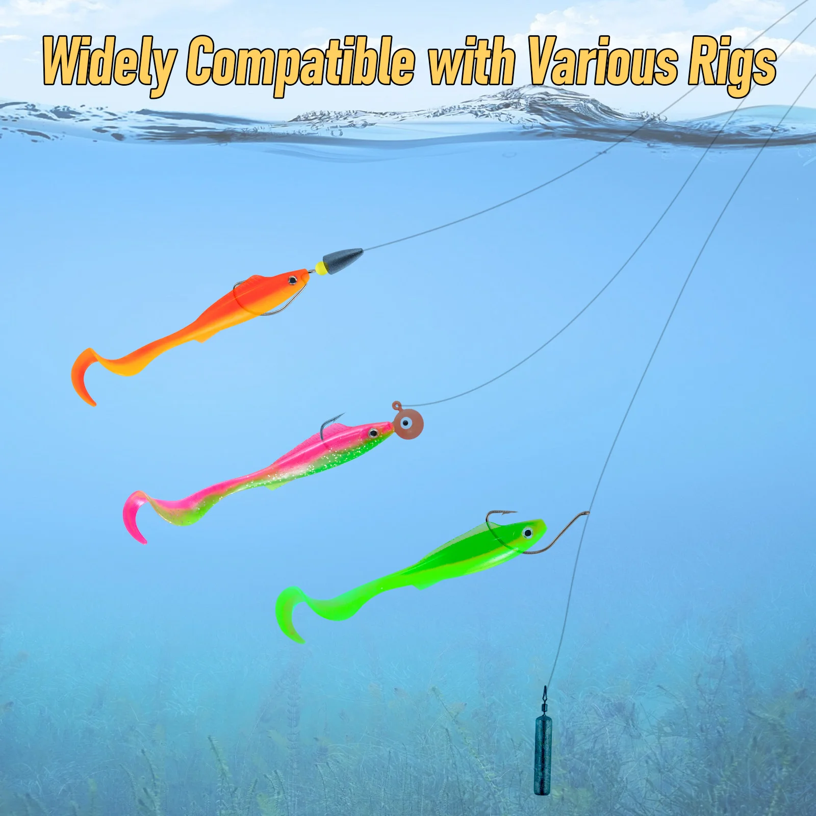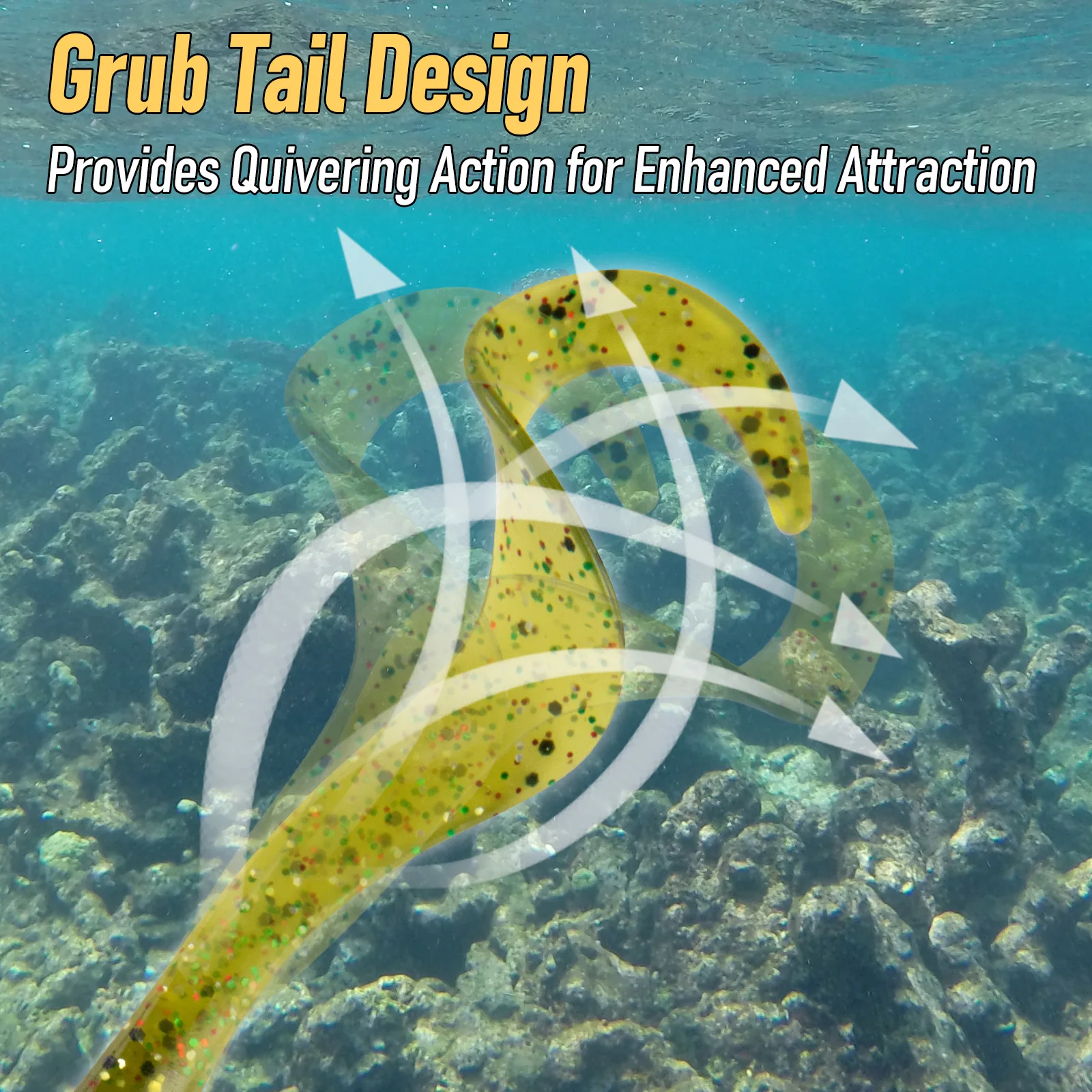 Cola grub suave y flexible con adornos brillantes para imitar de cerca la apariencia y la acción de natación de un pez cebo real, exactamente lo que los peces hambrientos no pueden ignorar