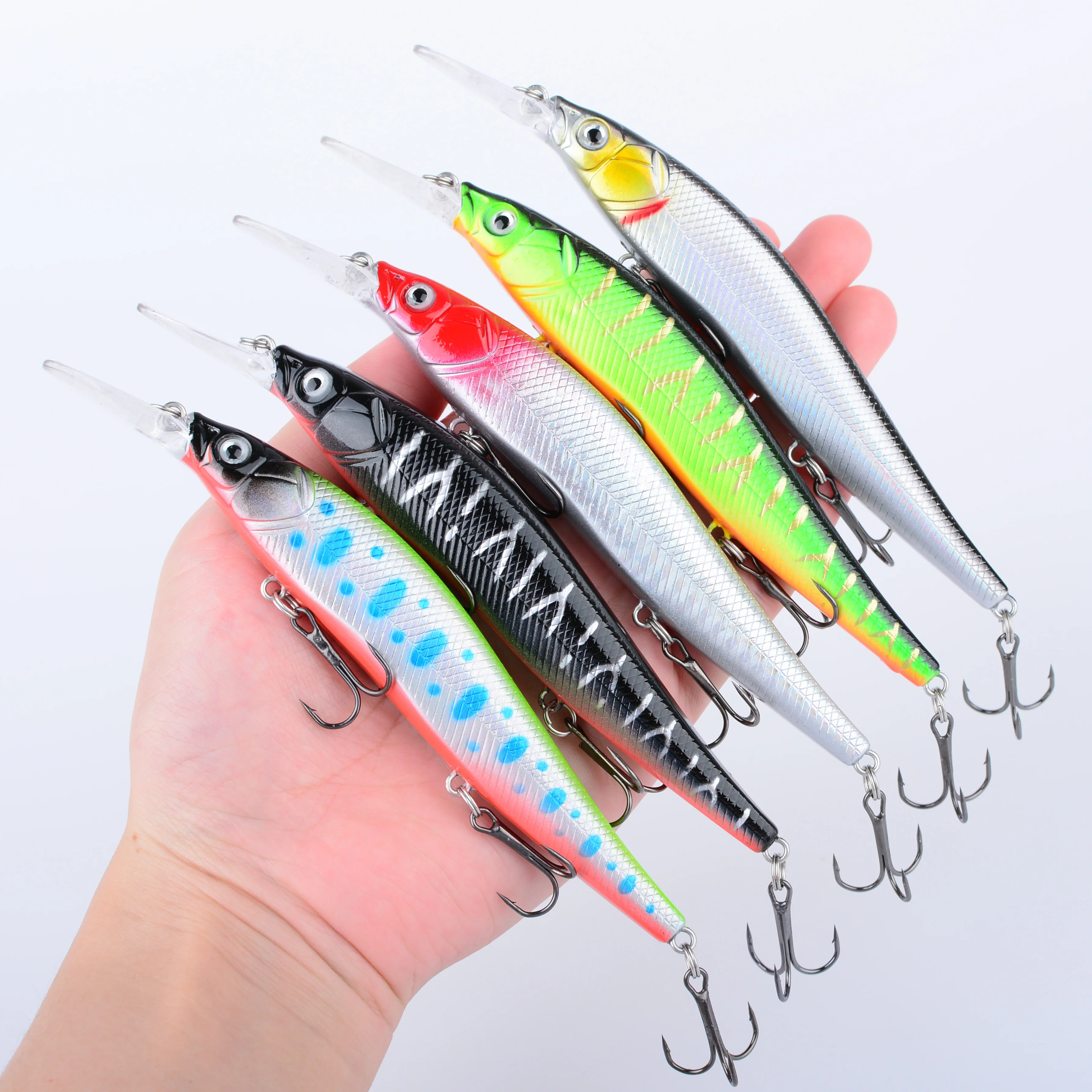 10 Uds. Señuelos de pesca flotantes Minnow Wobblers cebo duro Artificial con Triple gancho para lubina Crankbait