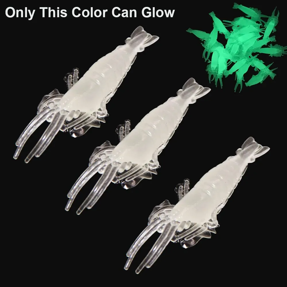 A LA VIDA: Los pequeños señuelos de camarones son muy detallados y realistas, las lentejuelas en el cuerpo pueden producir reflejos para atraer peces, los señuelos de pesca que brillan en la oscuridad atraen peces curiosos por la noche/aguas más profundas/mango.