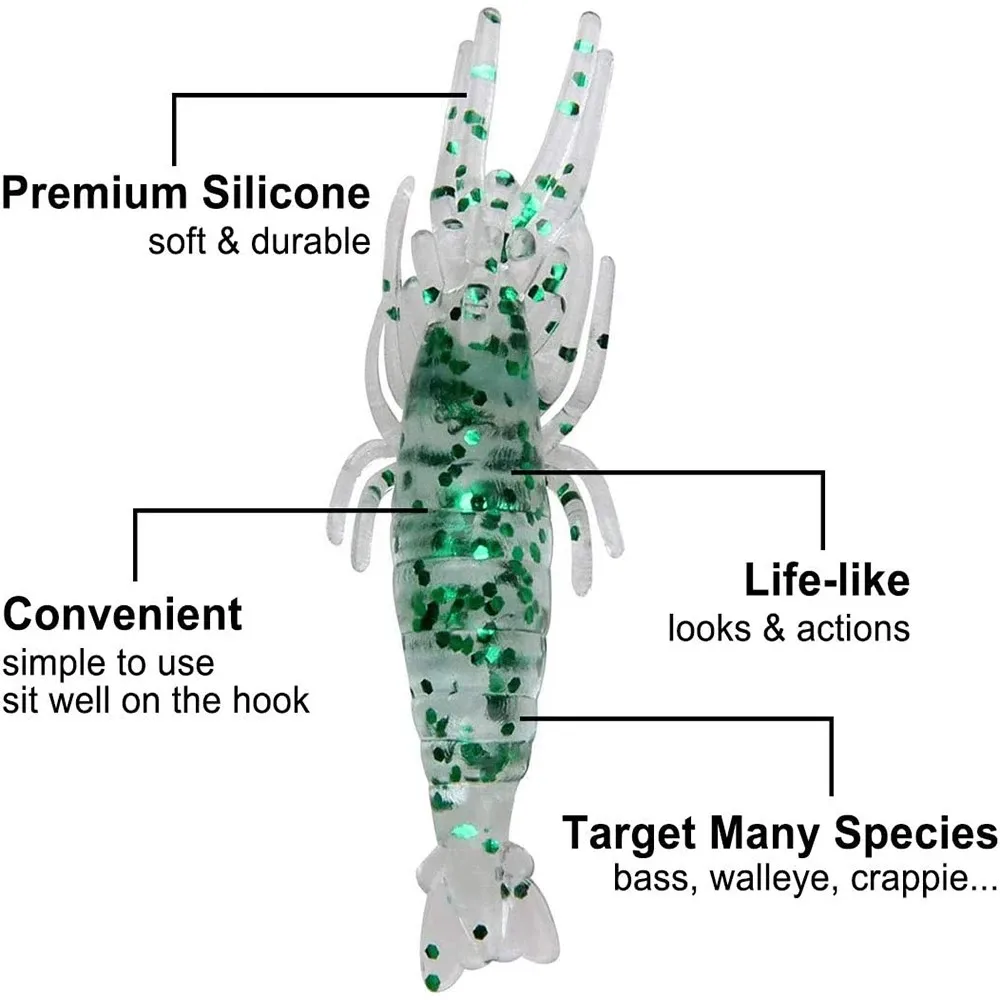 TRABAJA BIEN: Los señuelos blandos para camarones pueden realizar acciones de natación realistas, perfectos para una variedad de especies, como cabeza de serpiente, lubina, lucioperca, etc.